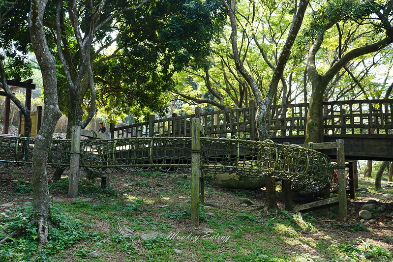 過了小爬坡來到涼亭休息處,結合體訓場這裡有許多設施可以玩
