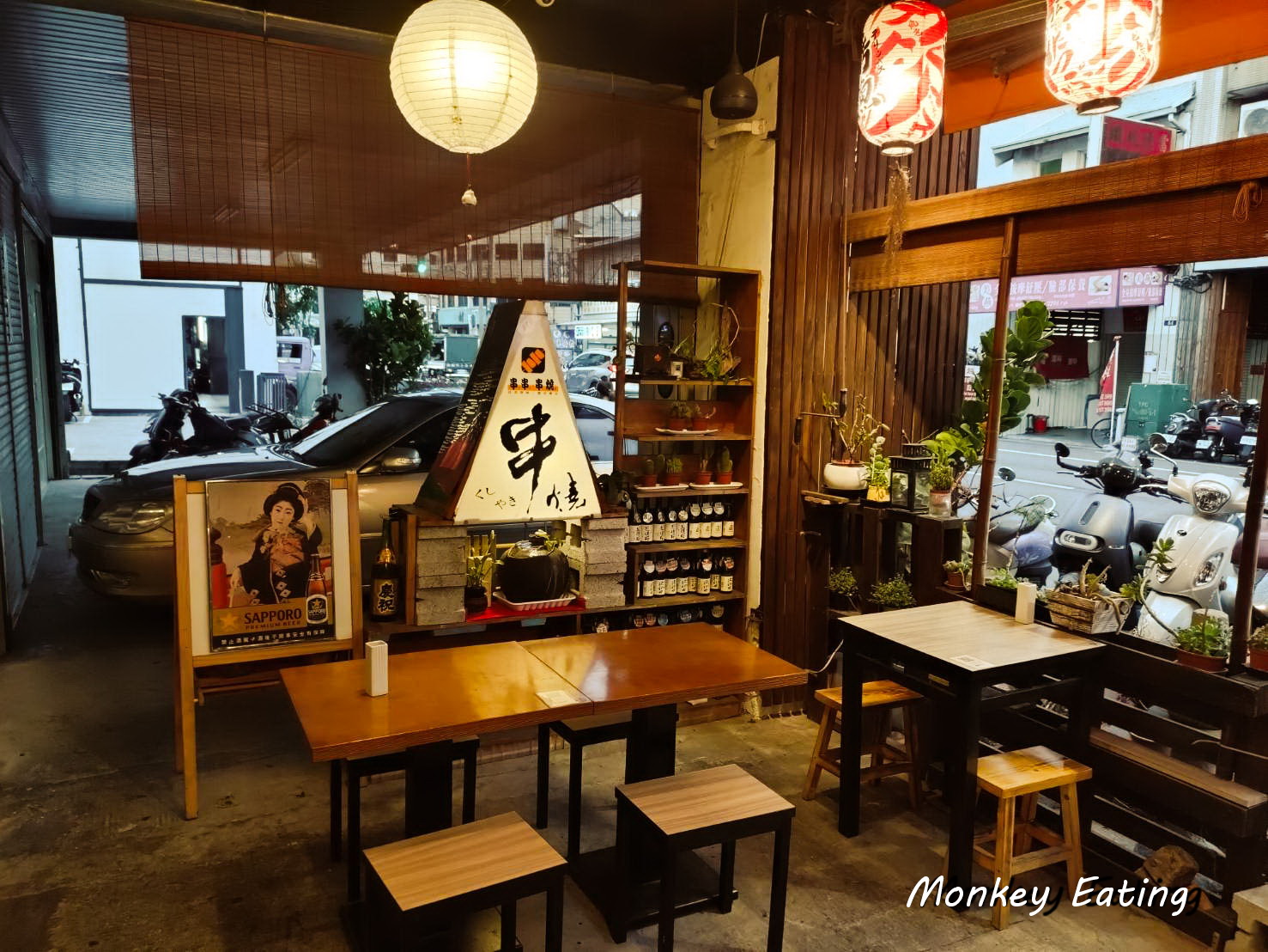 一踏進「串串串燒」,立刻就被那股濃濃的日式居酒屋氛圍給吸引住了!雖然店面小巧精緻,但整體空間規劃得非常溫馨舒適。木質調的裝潢、暖黃色的燈光,還有牆上那些充滿日本風情的掛畫與小物,瞬間讓人有種置身日本街頭小店的錯覺,超有情調的啦!