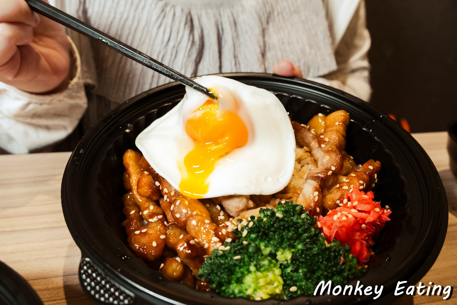 輕輕劃開,蛋液緩緩流下,與底下的米飯和配菜完美融合,光看就覺得滿足!