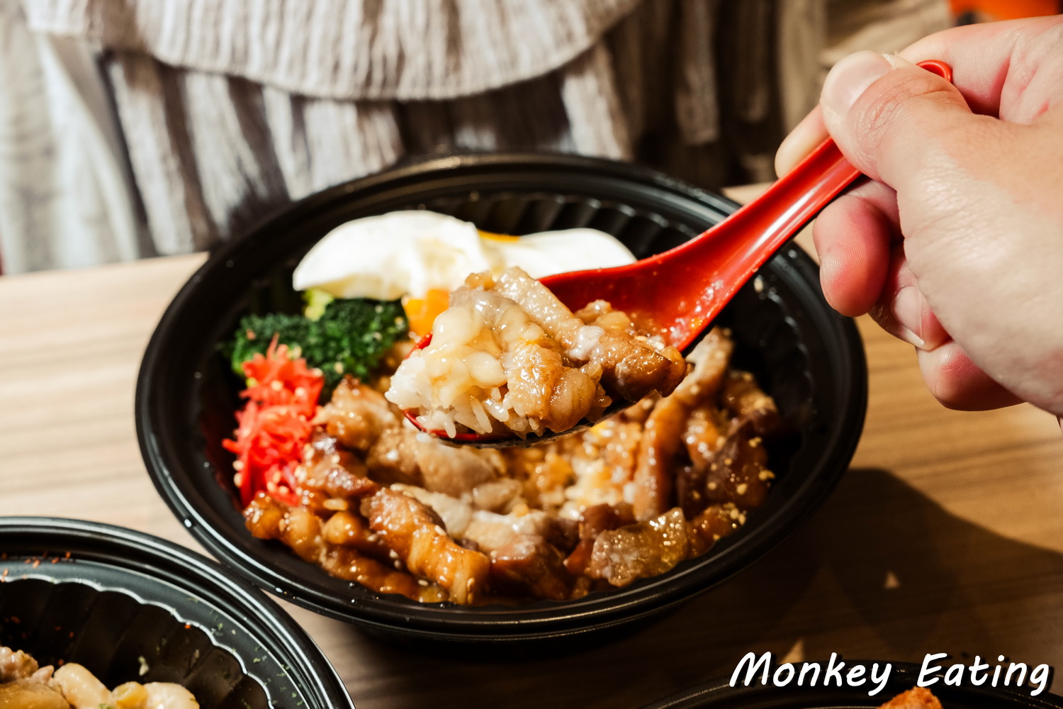 把蛋液、五花肉和米飯拌在一起吃,每一口都充滿鹹香滋味,真的會讓人一口接一口,吃到碗底朝天還想再來一碗,完全不愧「黯然銷魂」這個稱號啊!