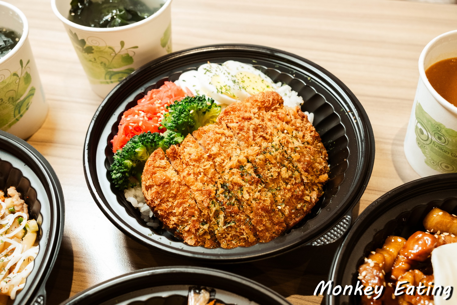 這道「炸豬排咖哩飯」的配料除了主角炸豬排,還搭配了花椰菜跟水煮蛋。