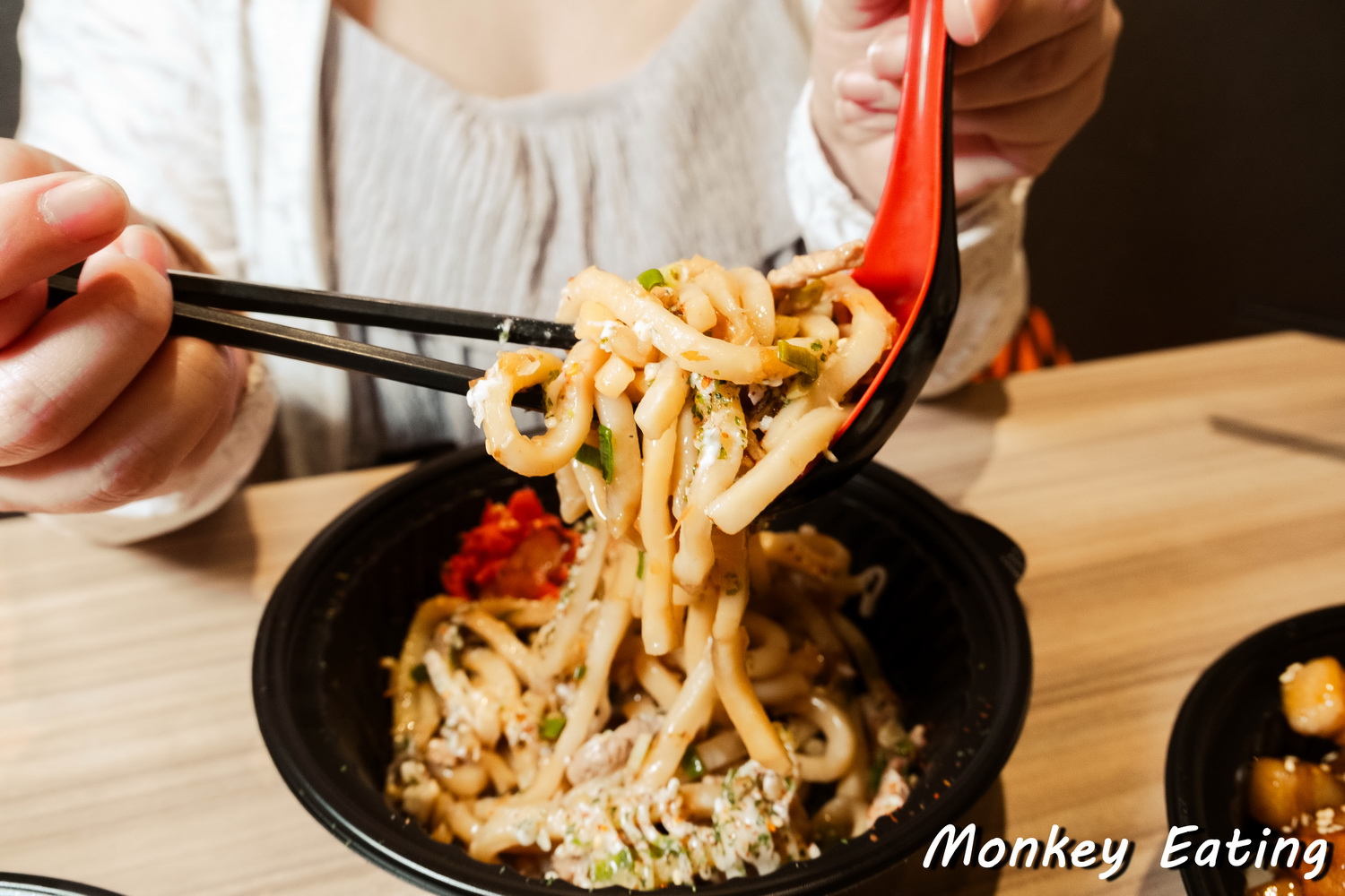 每一口都能感受到烏龍麵在齒舌間跳動的Q彈口感,加上炒得恰到好處的配料,整體味道鹹淡適中,不會過於油膩,吃起來非常涮嘴,讓人一口接一口,每口都很滿足!作為下班後的晚餐,這份炒烏龍麵真的超級療癒,好吃又飽足!