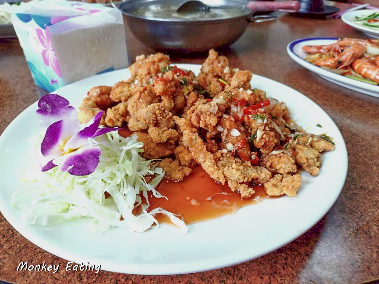 這道酥炸銀魚是我們這次用餐的一個小驚喜!外皮炸得金黃酥脆,咬下去卡滋卡滋的,銀魚本身肉質細緻,帶著自然的鮮甜。沒有過多的調味,更能品嚐到銀魚本身的鮮美,是很棒的開胃小點,也很適合配啤酒,哈哈!小朋友們一定也會很喜歡這道,酥酥脆脆的口感,讓人一口接一口停不下來。