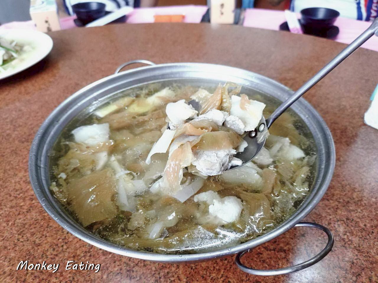 最後當然要來一碗熱騰騰的湯品做個完美的收尾!我們點了客家風味湯,裡面有滿滿的三層肉和福菜。三層肉肥瘦適中,吃起來軟而不膩,福菜的酸香則完美融入湯頭中,讓整碗湯喝起來鹹香回甘,暖胃又暖心。這碗湯不僅料好實在,更是充滿了濃濃的客家風味,喝完感覺全身都暖呼呼的,真是一絕!