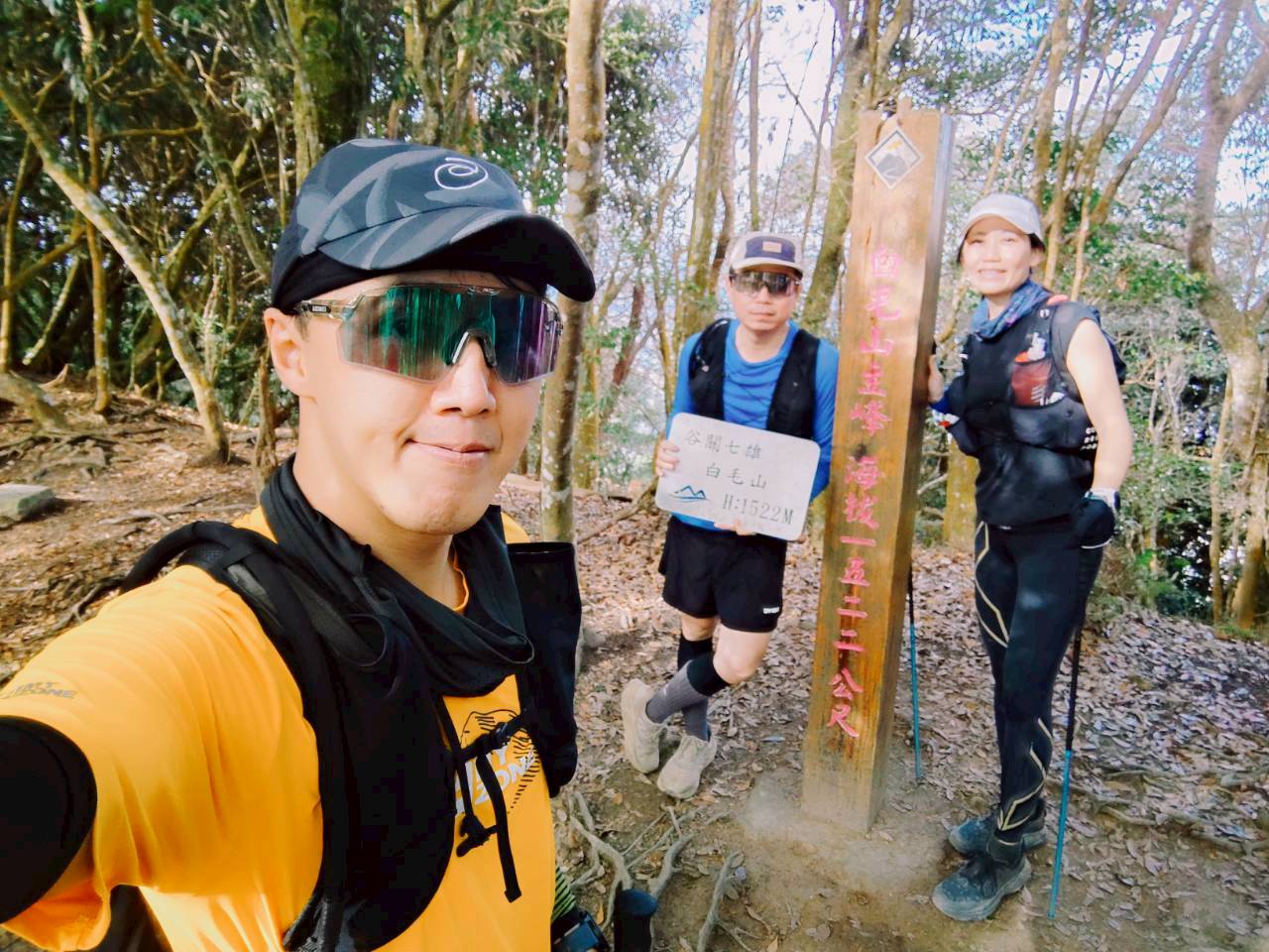 攻頂白毛山,海拔1522公尺,展望極佳,能俯瞰大甲溪谷與遠方的山巒,是個很棒的休息點。