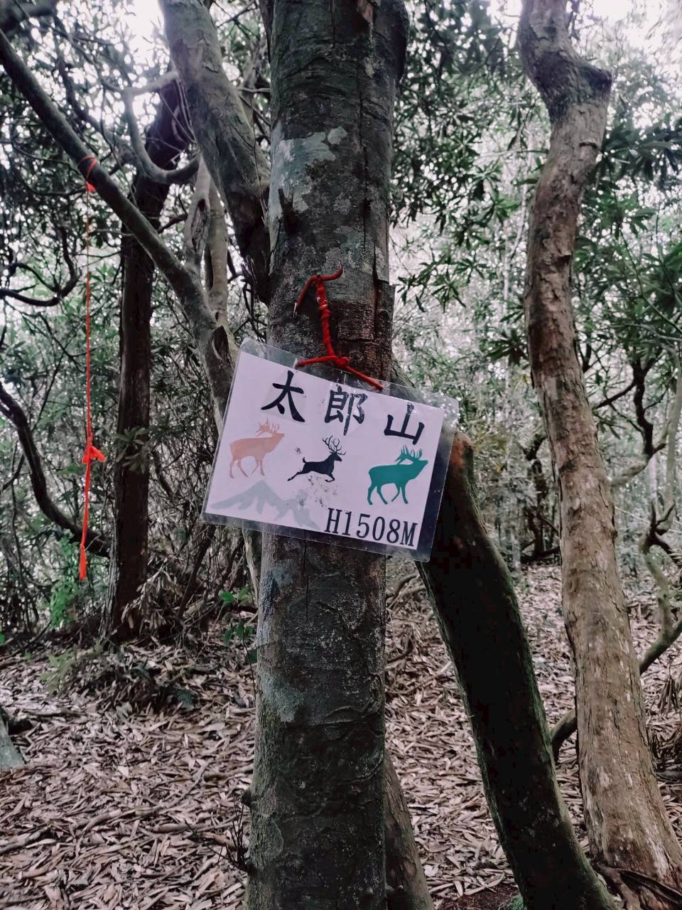 太郎山海拔1508公尺,只有一個指示牌。這裡的展望通常被樹林遮蔽,主要是作為一個中繼點。到這裡,我們通常會補充一些能量,準備迎接下一個大魔王。