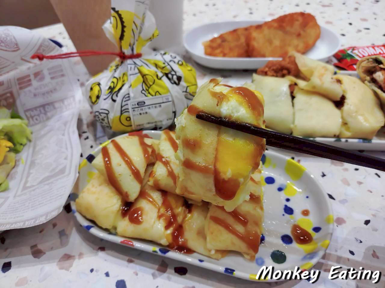 蛋餅皮煎得恰到好處,口感軟嫩Q彈。裡頭的薯泥非常細緻綿密,帶有淡淡的奶香,配上鹹香濃郁的雙重起司,在齒舌間交織出豐富的滋味,真的沒得挑剔,好吃到我一個人可以吃掉一整份!