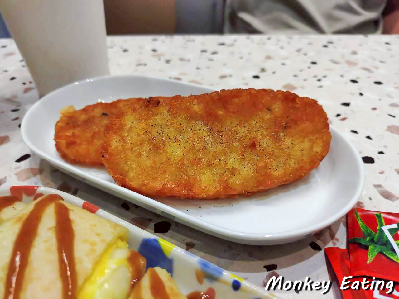 早餐店的經典薯餅,桂英早堂也做得很好吃!炸得金黃酥脆,內裡馬鈴薯泥綿密,熱騰騰的吃起來超級過癮,是配餐的好選擇,小朋友們一定會超愛!