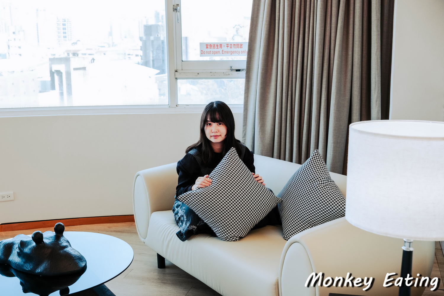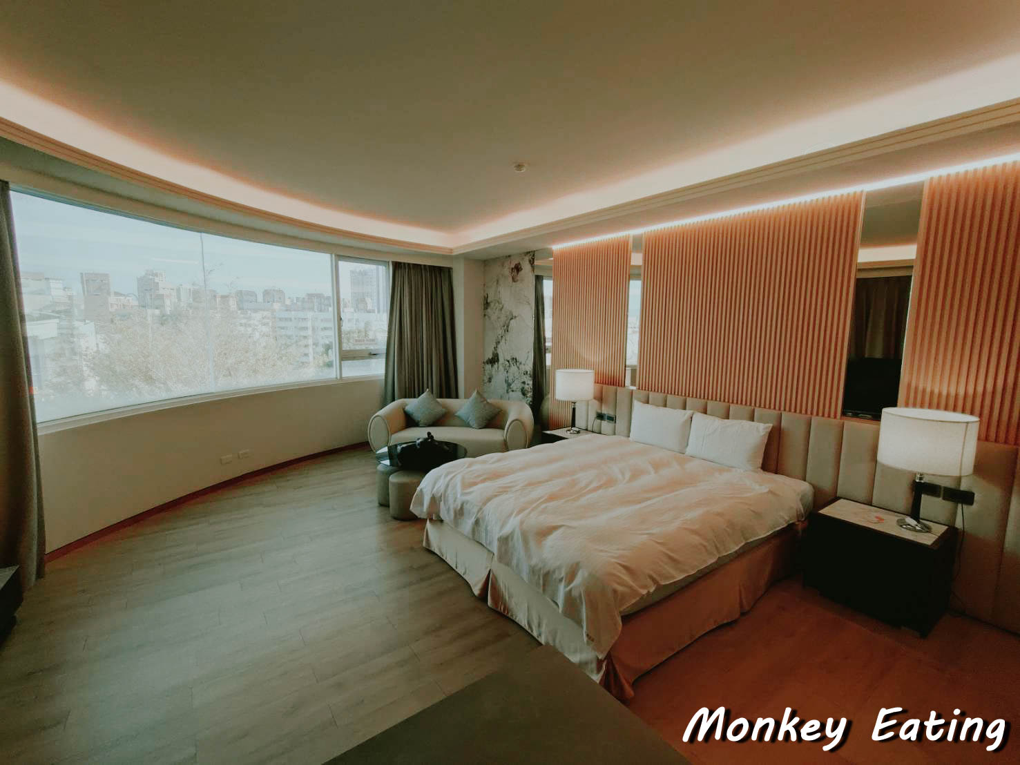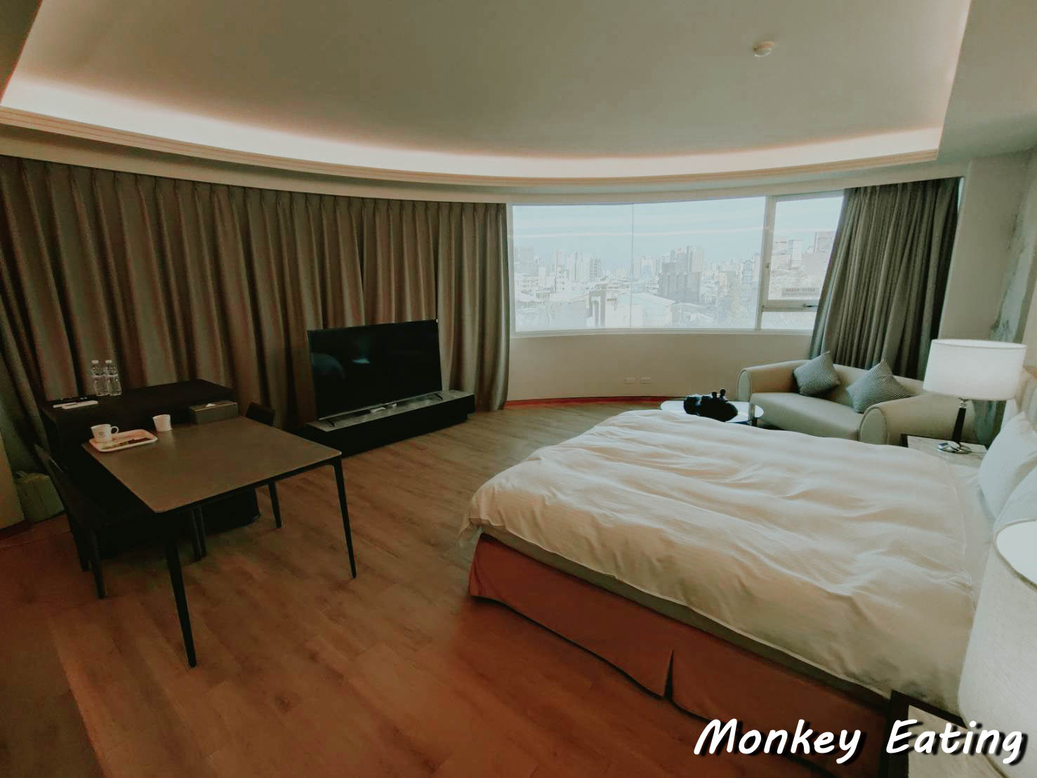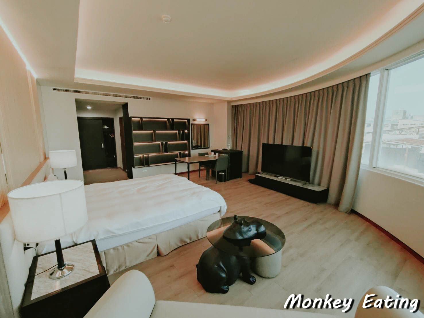 這次我們入住的是禾康商旅的「VIP雙人房」,這間房型主打的就是「時尚風格環形景觀窗」,光聽就覺得好期待!一進門,我就被房間的寬敞度給驚艷到了,從入門口的置物區到客房的整體空間,都比我想像中還要大很多!