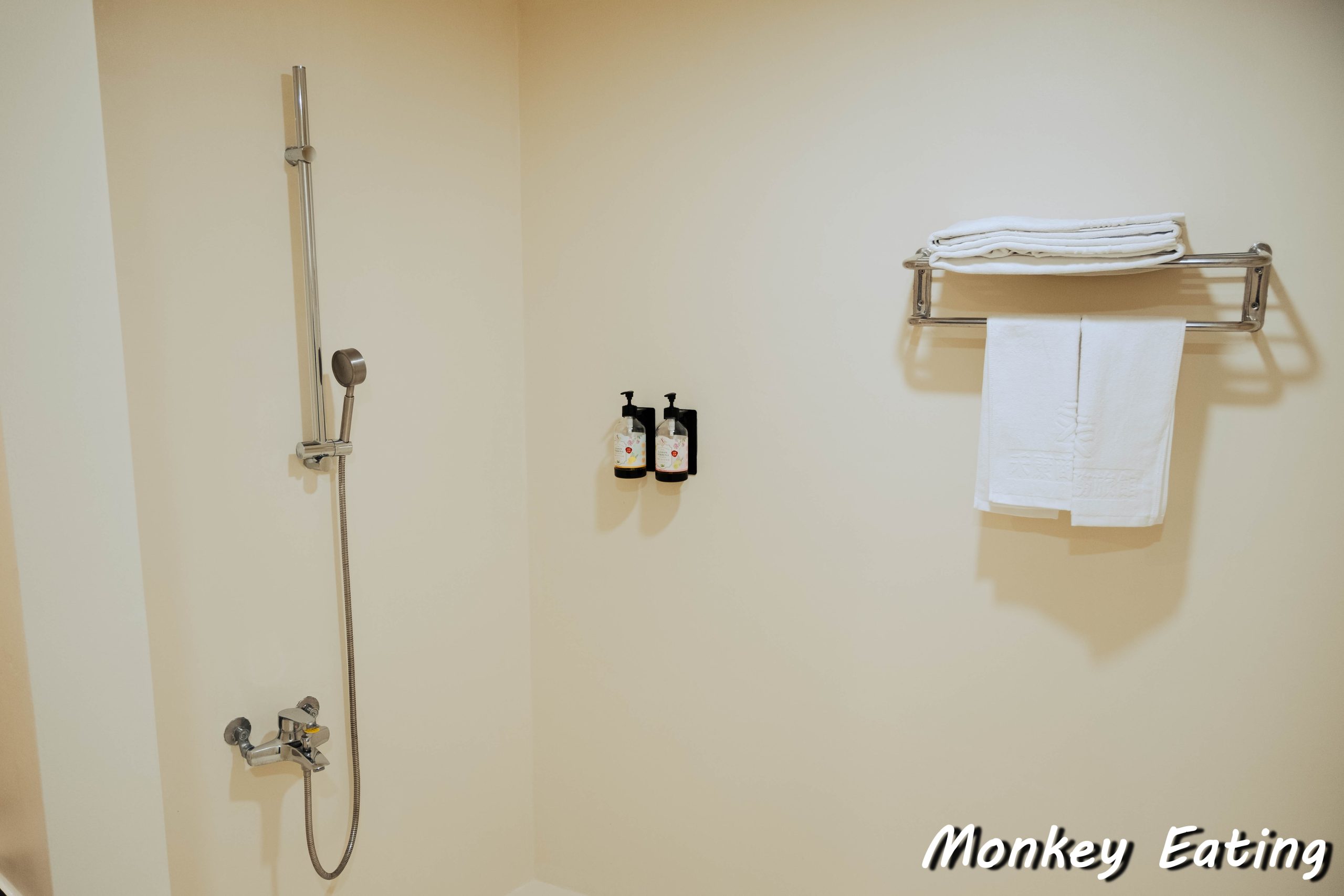 淋浴間的水壓很穩定,水溫也夠熱,洗起來很舒服。最讓我印象深刻的是,他們家提供的沐浴乳和洗髮精是直接壁掛在牆上的,不僅環保,而且味道超級好聞!是那種草本清香的馬鞭草味道,洗完之後身體香香的,感覺整個人都放鬆了,好喜歡這種細節的用心!