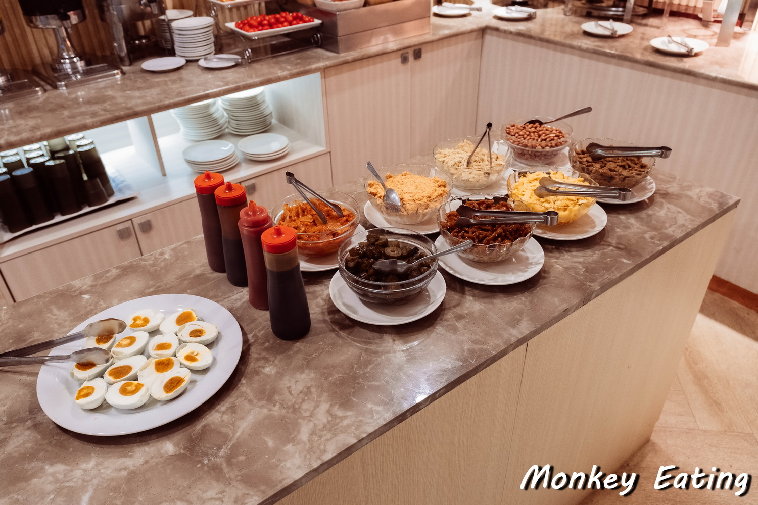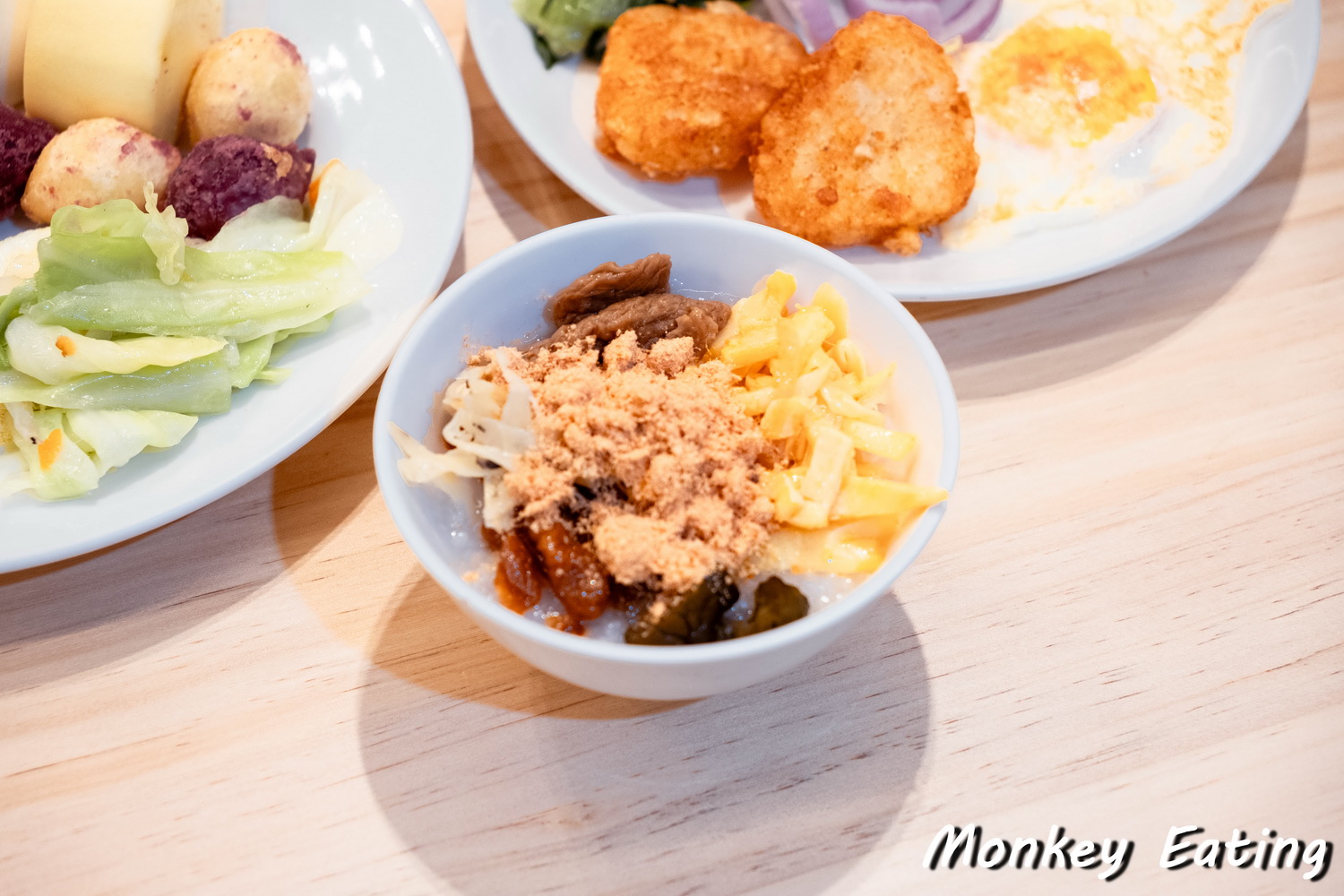 我去的時候有看到熱騰騰的白粥,搭配多樣的小菜,像是肉鬆、麵筋、醬瓜等等,很有家的味道。西式部分則有烤麵包、吐司,搭配果醬奶油。還有炒麵、炒青菜,甚至也有一些葷素搭配的菜色,滿足不同飲食習慣的朋友。當然,咖啡、茶飲和果汁也是不可少的。