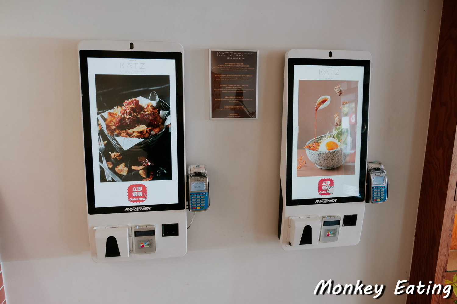 KATZ 勤美店採 一樓點餐、二樓內用的配置,一樓以點餐與外帶為主,採用點餐機點餐(支援:信用卡、悠遊卡、Line Pay、Apple Pay),也可選擇現金印單至櫃檯結帳,二樓則是自行入座,無提供訂位服務。