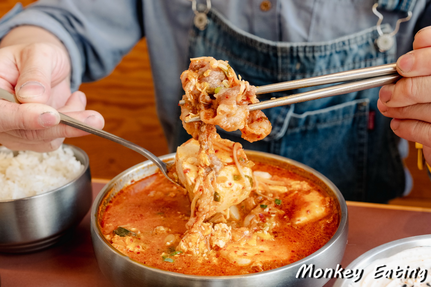 湯頭辣中帶甘,溫潤順口,是不太敢吃辣也可以接受的辣度。我喜歡嫩豆腐入口即化,牛肉份量實在,拌在飯上整個非常下飯,是冬天或想吃暖胃料理時點上一鍋還挺不賴的。