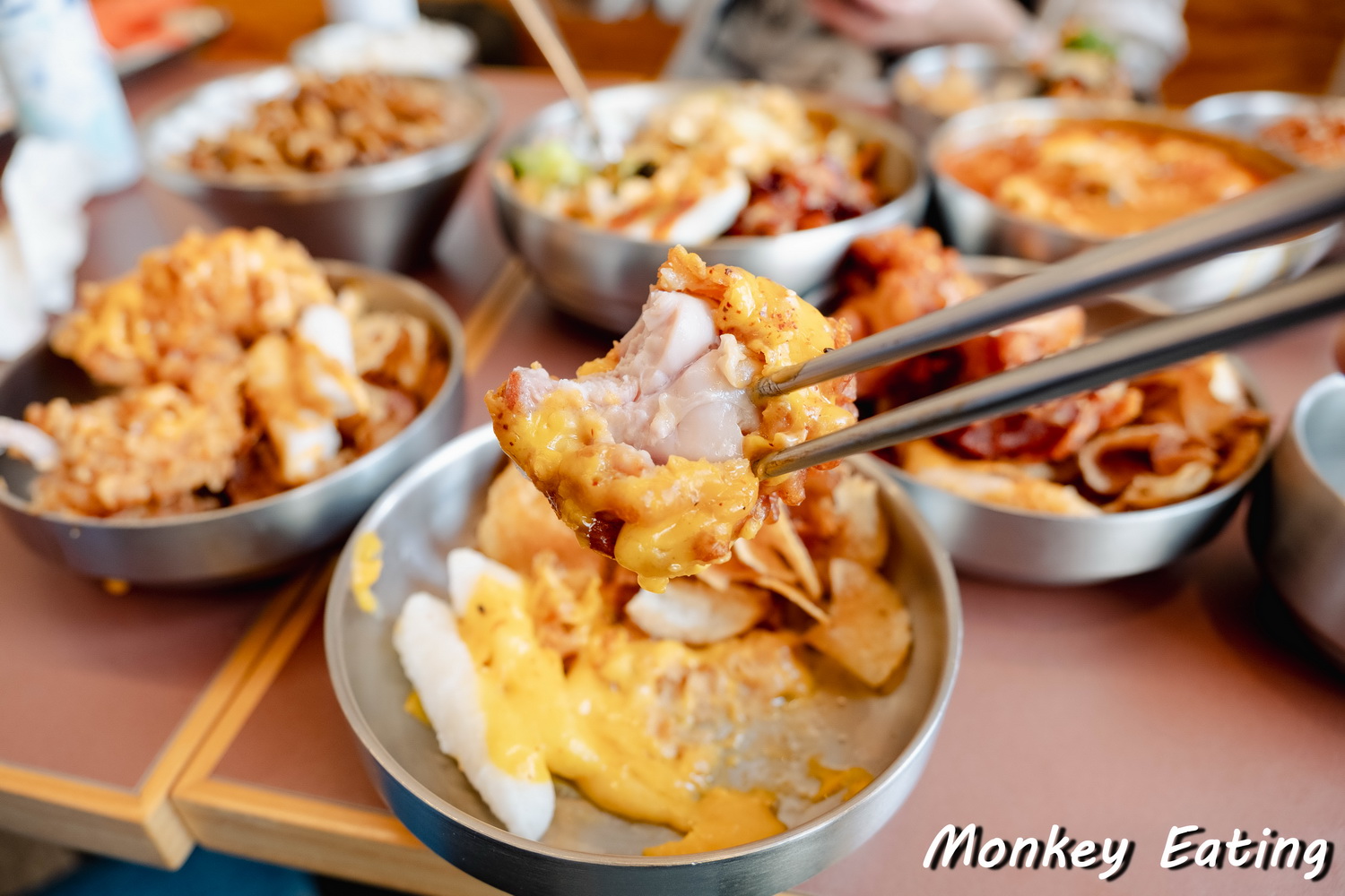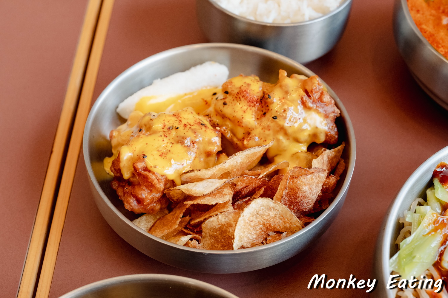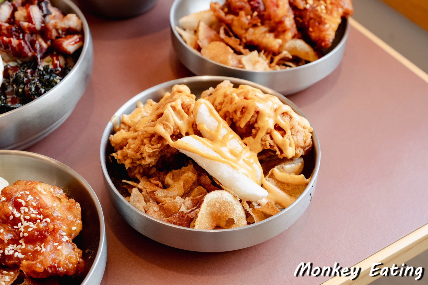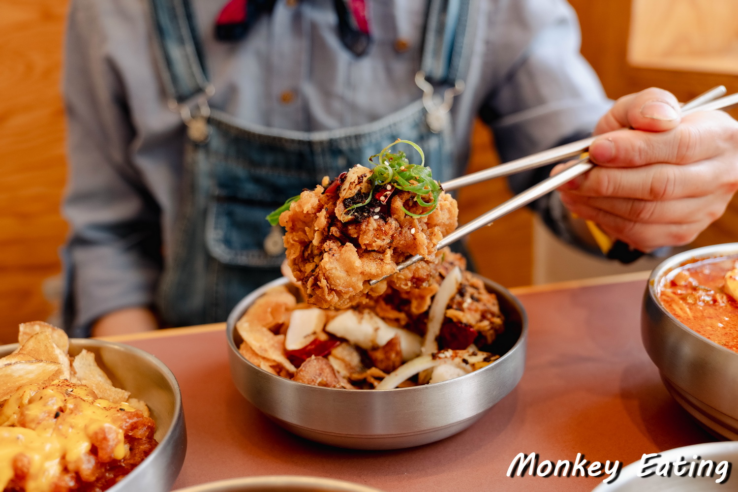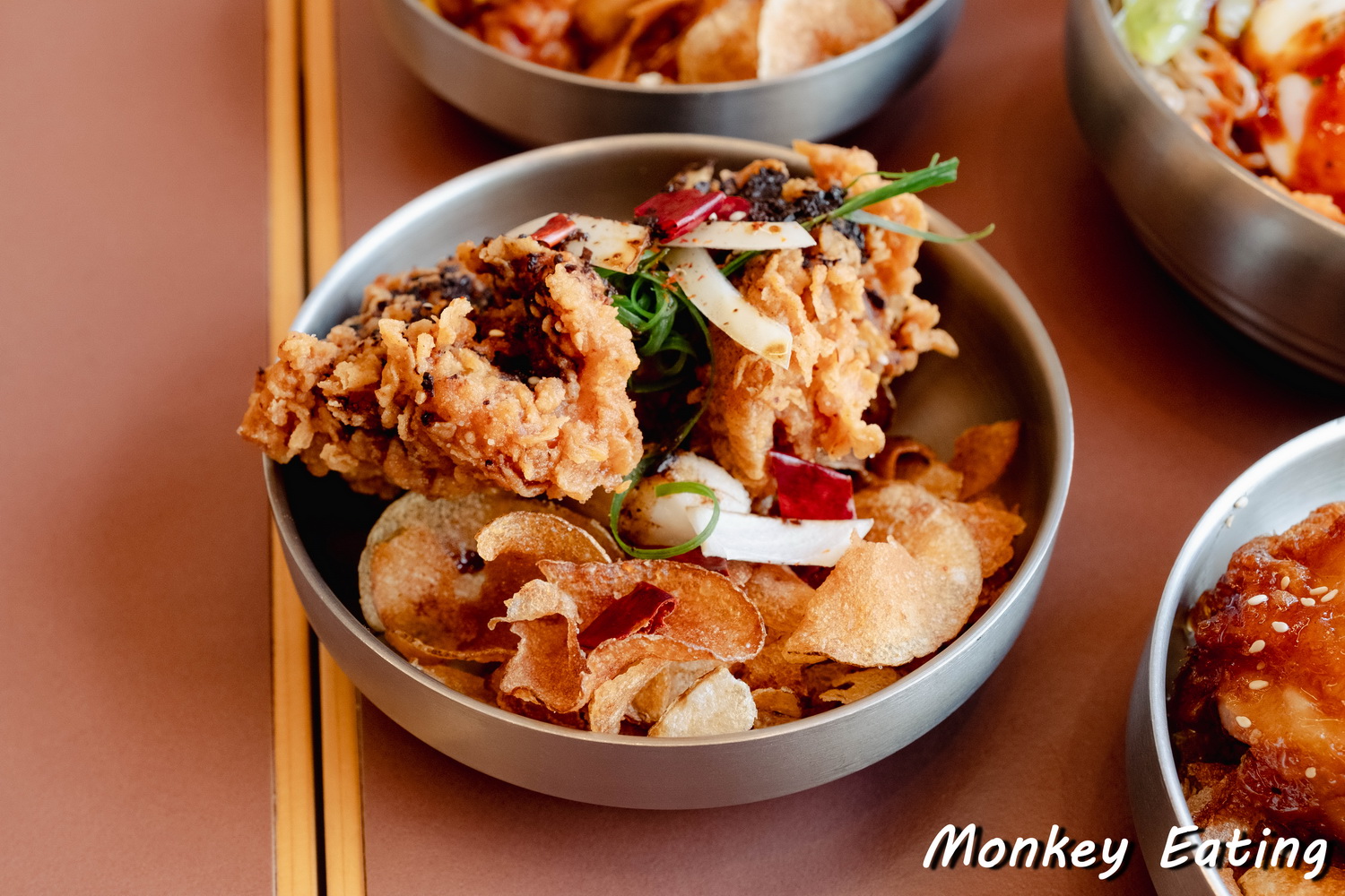 炸雞、鍋物、拌飯都很適合三五好友小聚一起分著吃,這次點了幾乎都是店家的招牌口味,此外這次炸雞外衣還可以選擇風味,這次搭配的是經典外衣:椒鹽、肯瓊;傳統外衣:蜜汁、起司、椒麻,各有不同口感,可以自己選擇喜歡的炸雞外皮。