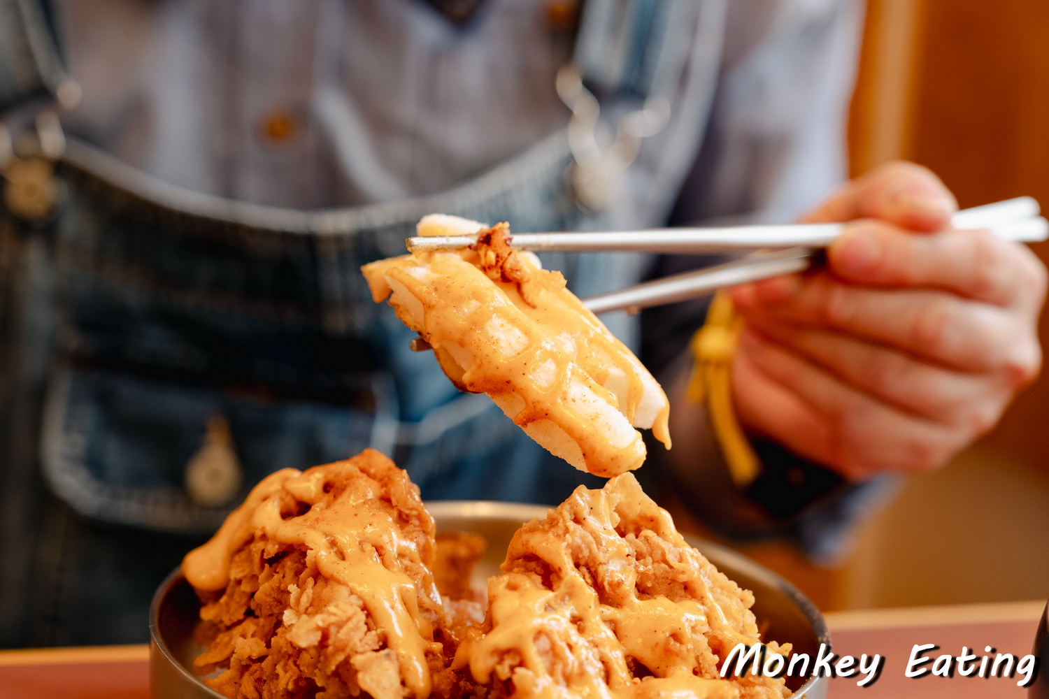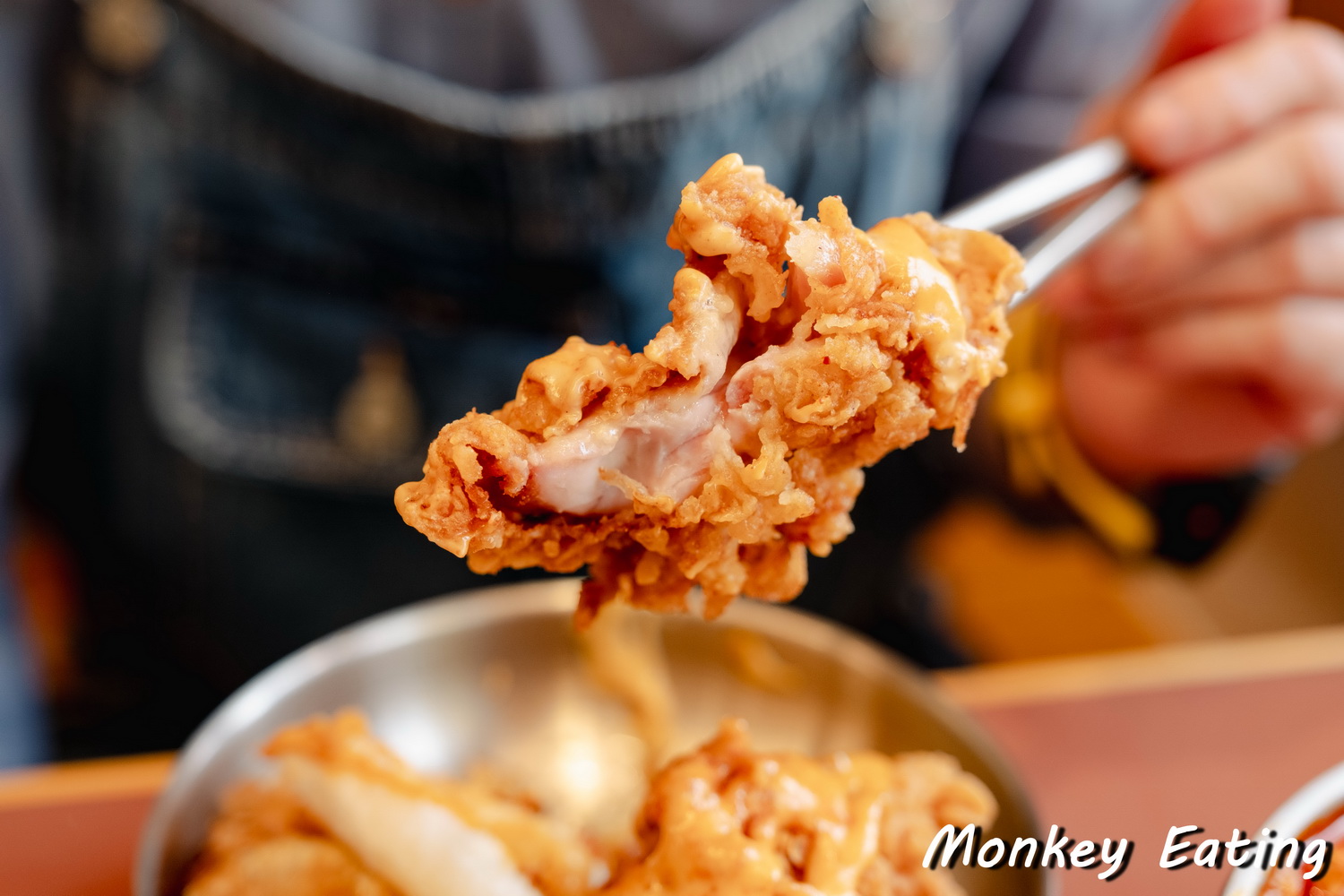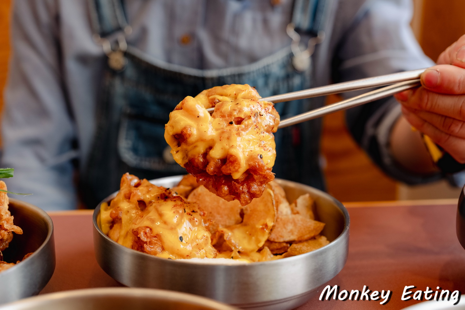 一口咬下韓式炸雞,薄而不厚重的炸衣,香氣在齒間瞬間散開。雞肉本身保有水嫩多汁的狀態,熱騰騰的肉汁在口中釋放,完全不乾柴。配上濃郁起士醬滑順綿密,整個層次立刻升級。