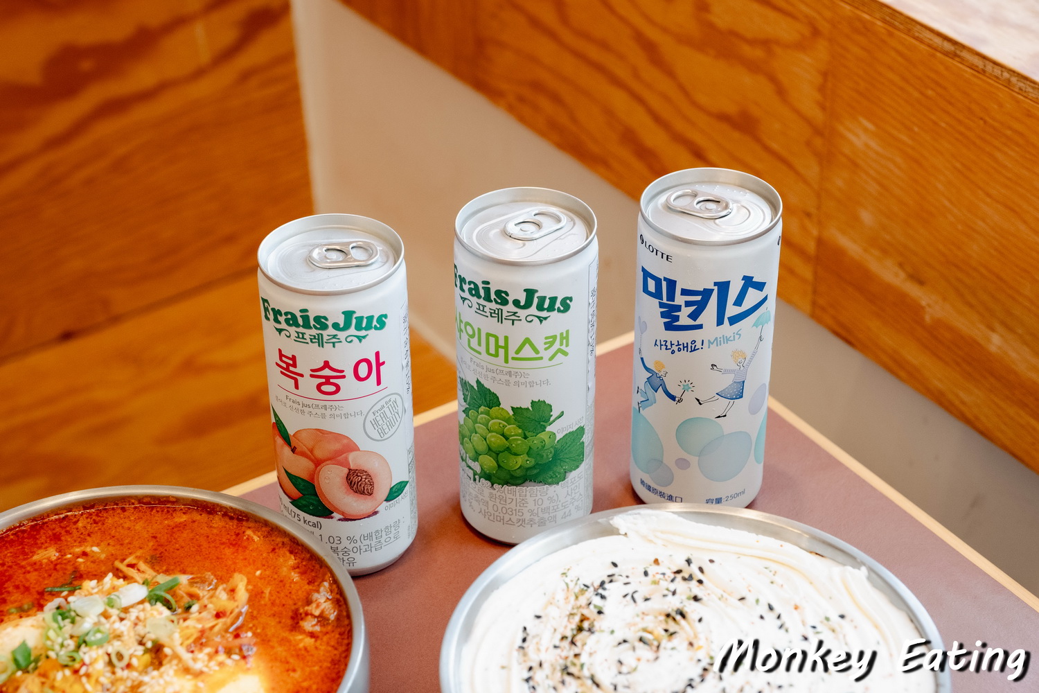 這三款經典韓國飲品各有特色,葡萄汁果香濃郁,酸甜平衡又解膩;水蜜桃果汁香氣清新柔和,甜度適中,冰鎮後特別順口;乳酸蘇打則結合微酸乳香與氣泡口感,清爽不膩,不管是哪一款都是搭配炸雞不錯的選擇。