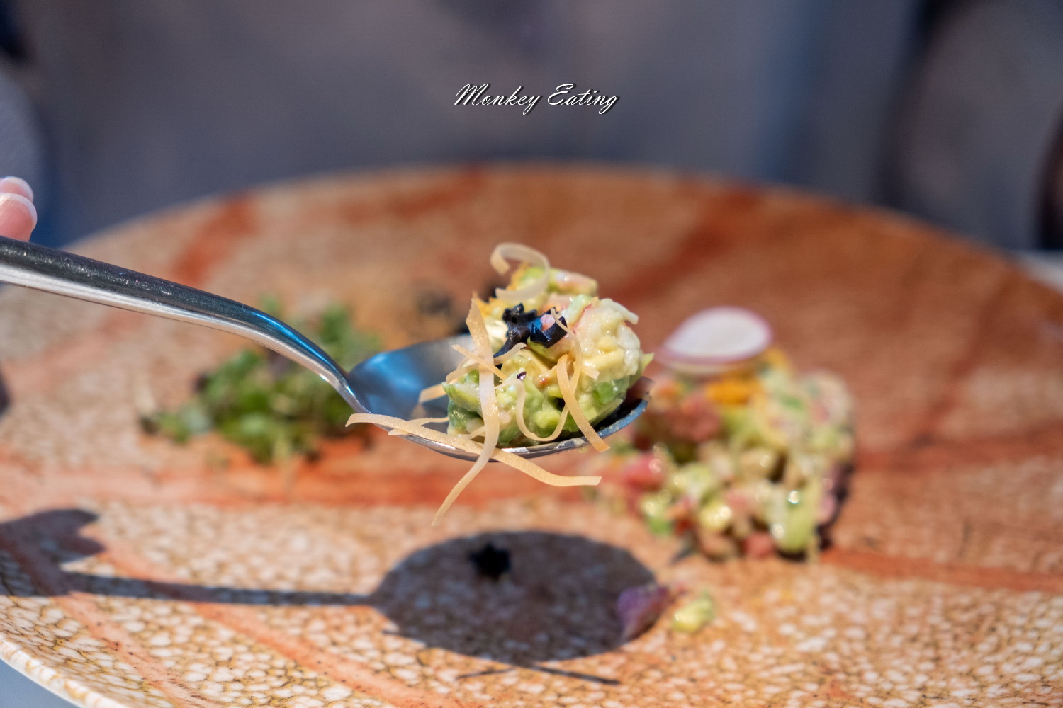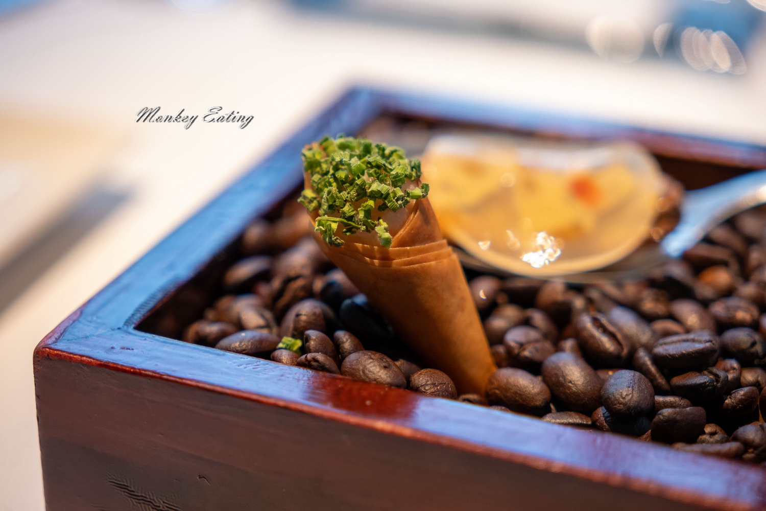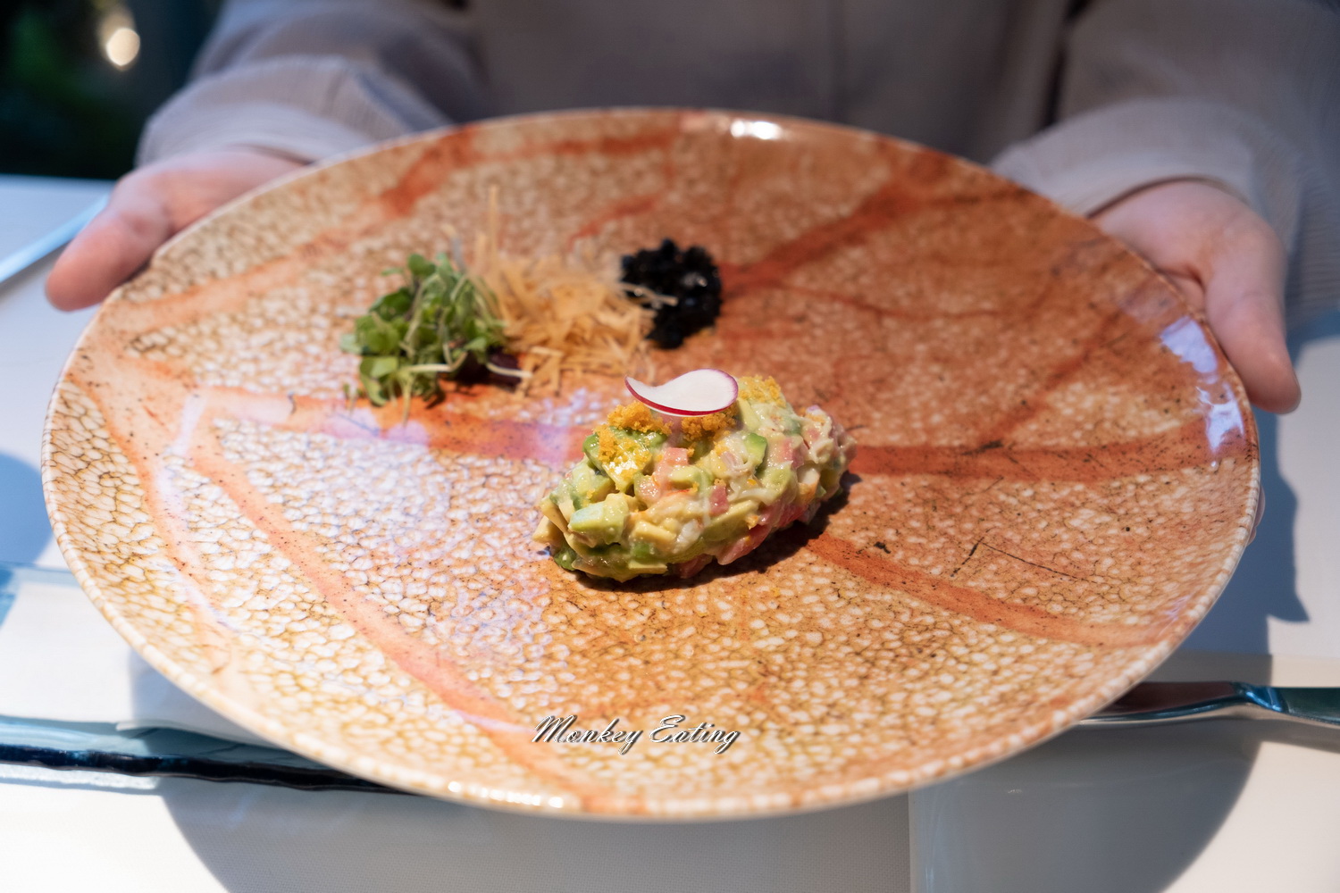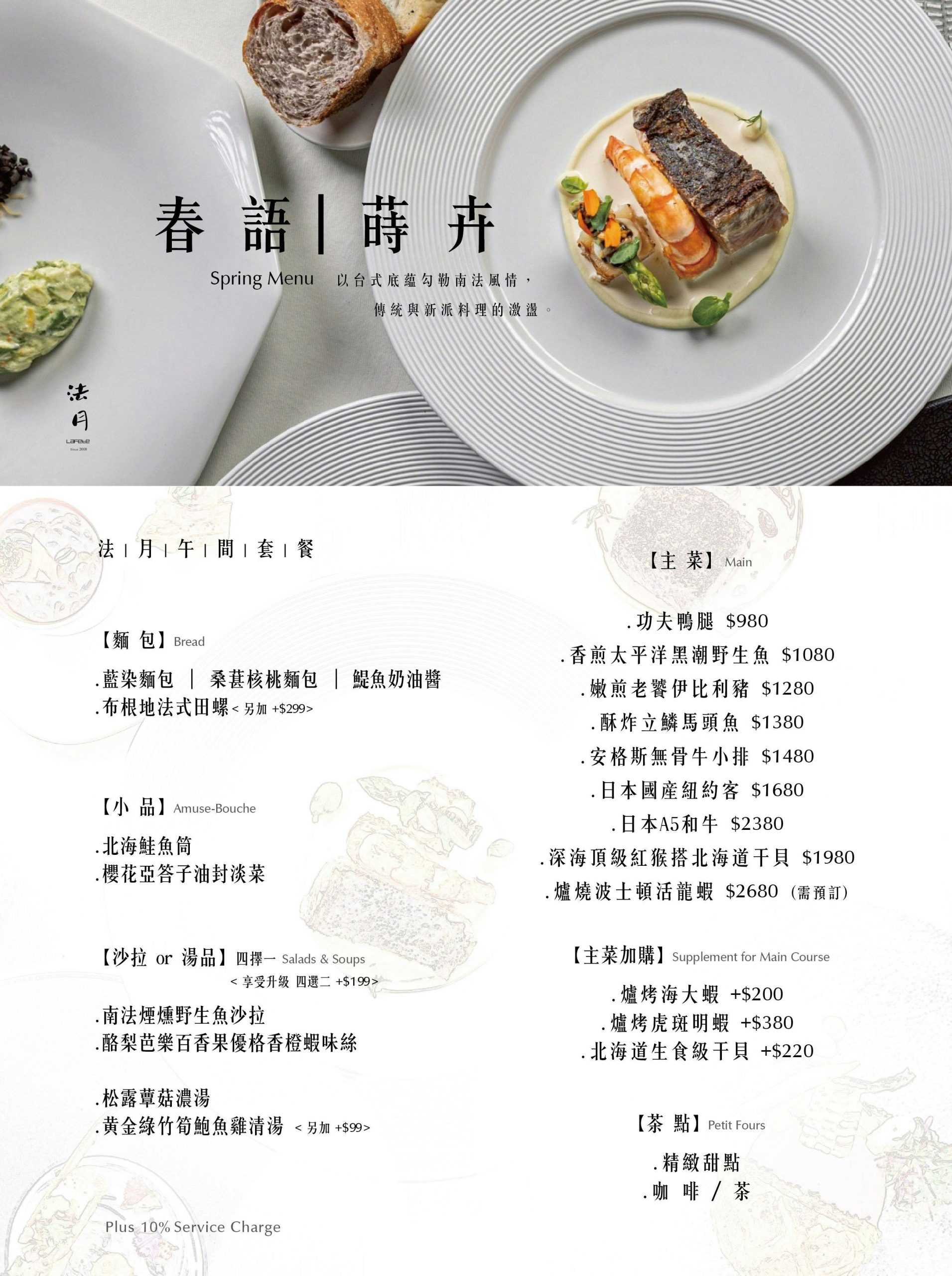 午間套餐只要$980元起,晚間套餐價格落在$1880~$3280之間,會多個幾道菜。趁著春季新菜單上市來嘗鮮一下,運用了當季新鮮食材去做變化,整體菜色會比較偏清爽不油膩的風格,主餐則有伊比利豬、高檔牛排、海鮮可以選擇。