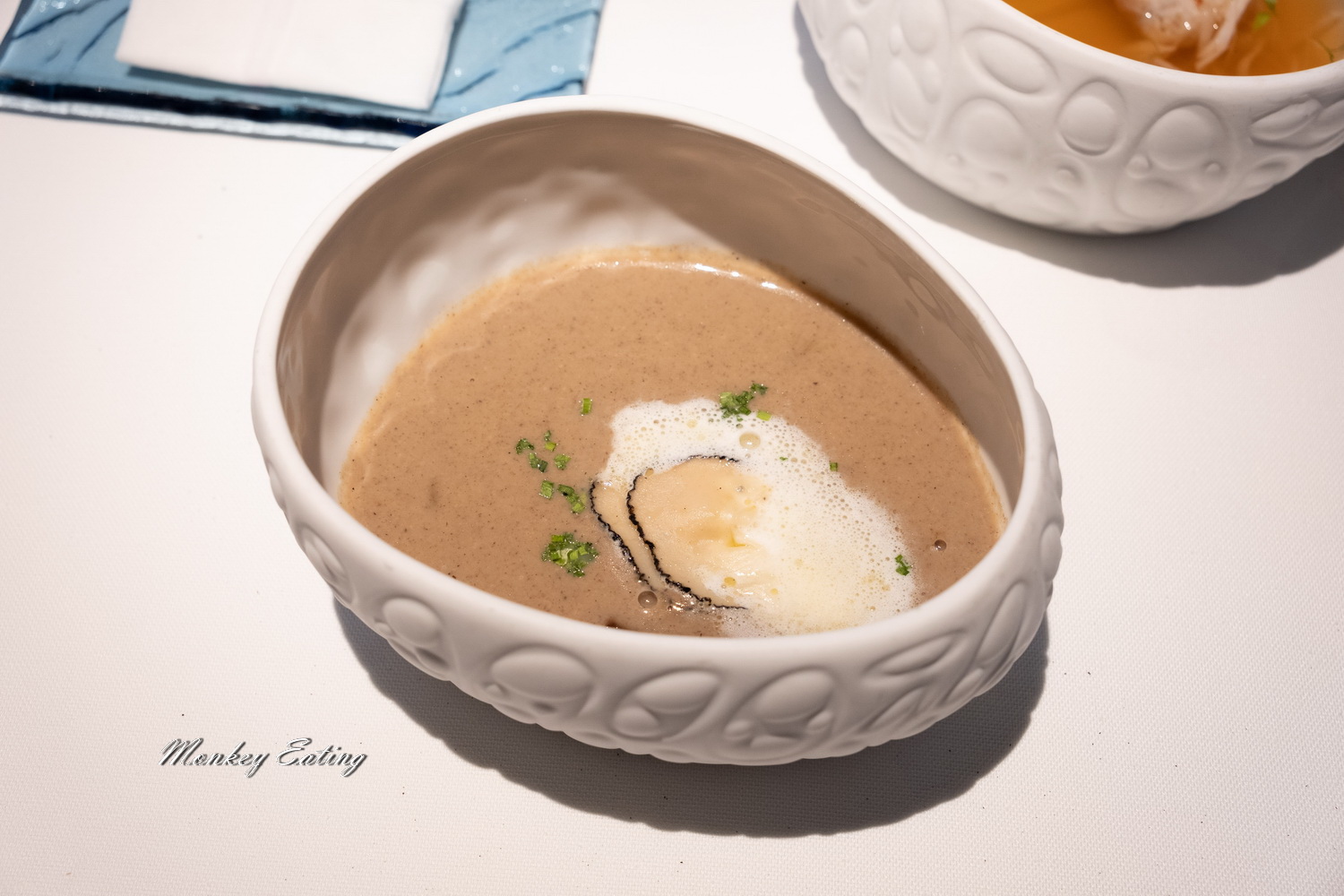 松露蕈菇濃湯,入口是絲滑綿密的口感,菇香豐富有層次,松露的高雅氣息在口腔中延展開來。
