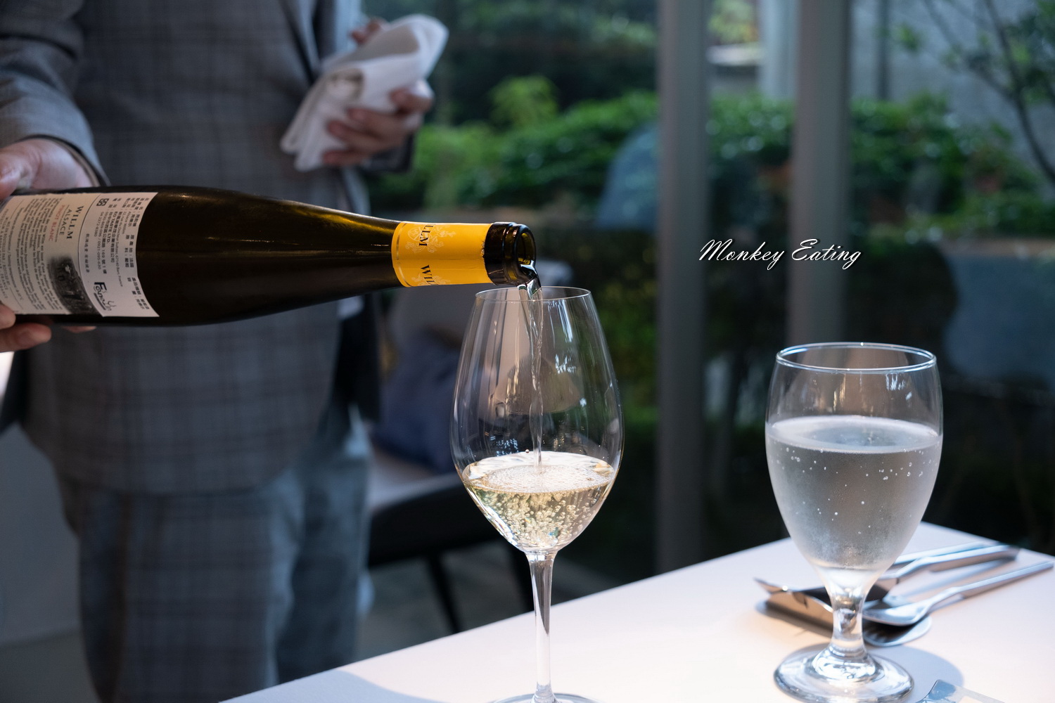 佐餐酒選了一支清新、優雅、百搭的法國白酒,配海鮮、白肉都很不錯。淡淡的金黃色,入口柔順,酒體輕盈,酸度適中,在尾韻呈現清新乾爽的口感。