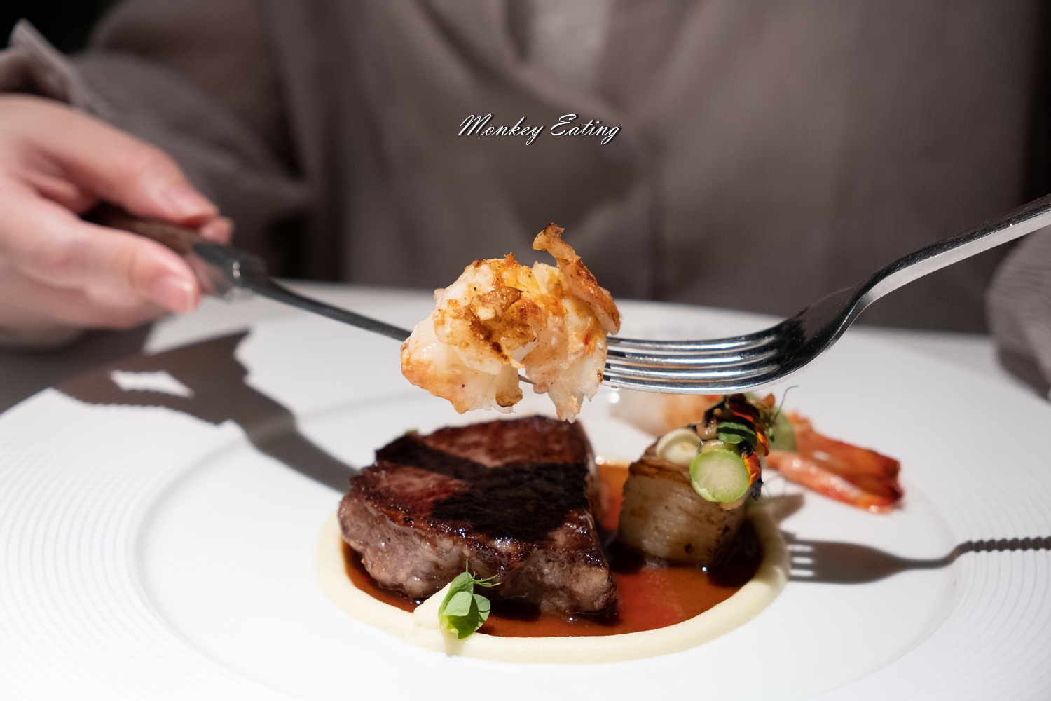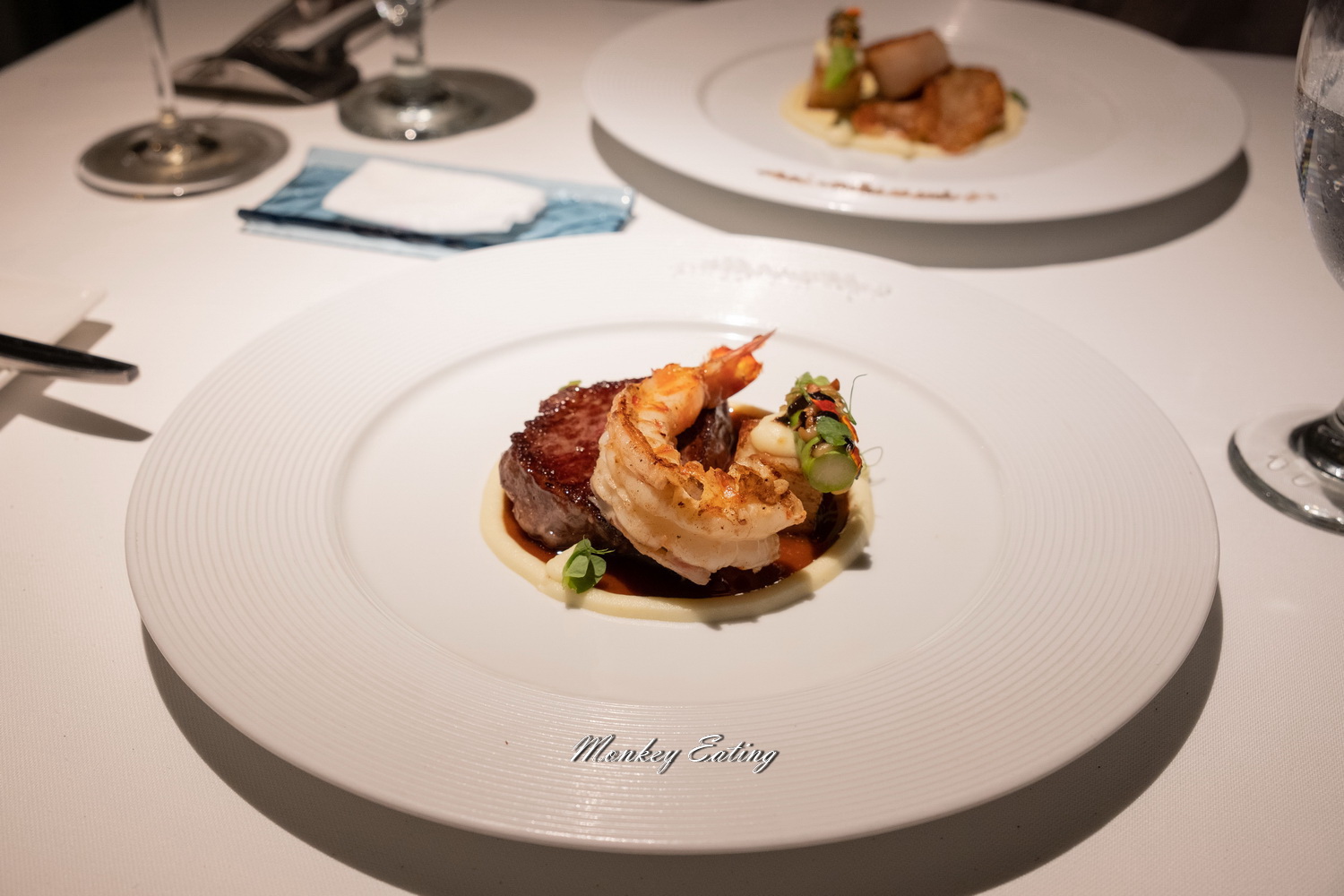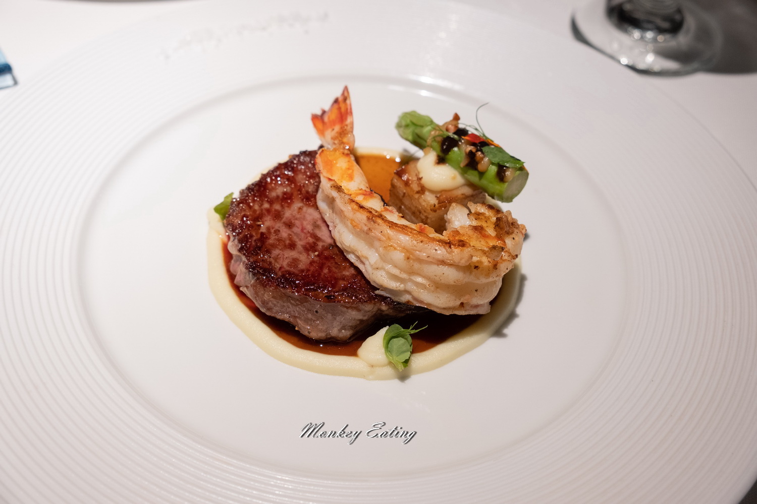主餐加購的虎斑明蝦相當大隻,經過簡單調味後爐火炙烤,不多作修飾,讓蝦的鮮味直接衝擊味蕾。肉質彈牙中透出濃郁的海洋甘甜,每一口都鮮味四溢。