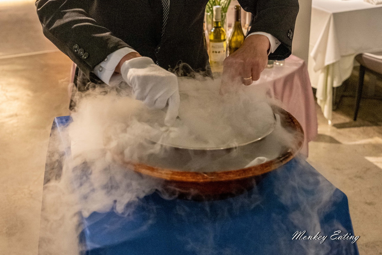 這道甜點是餐後的亮點之一!現場製作的液態氮炒冰秀,會在現場直接製作給大家看。冰的部分是石榴風味,酸甜有層次帶奶香。另一個則是伯爵慕斯蛋糕,清香淡雅的氣息,細膩柔順的口感,每一口充滿幸福感。