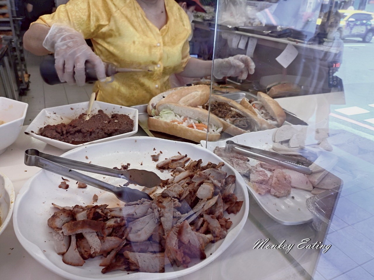 走近「越南法國麵包工藝」,最吸睛的莫過於店門前那一排透明櫥窗。玻璃櫃內整齊地陳列著各式各樣新鮮備好的經典越南餡料與配菜,讓人一眼看得目不轉睛,口水直流。