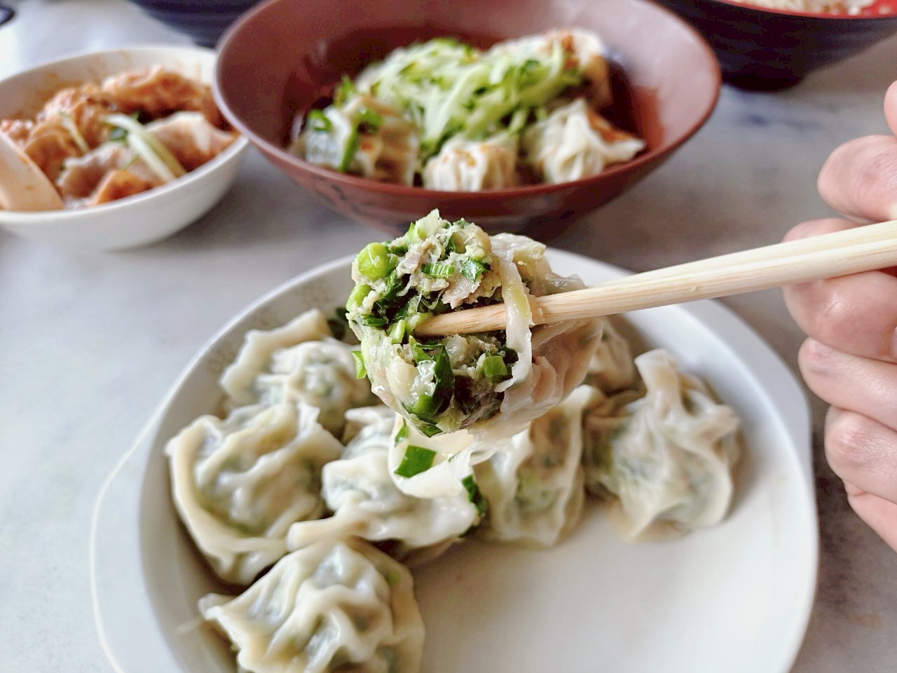 比起坊間常見冷凍水餃,這裡的水餃是現包現煮,從麵皮濕度到收口技術都能看出手工老店的底蘊。鮮肉水餃個頭不算小,外皮厚薄適中、帶有微微彈性,咬下去瞬間感受到湯汁與肉餡的完美結合。