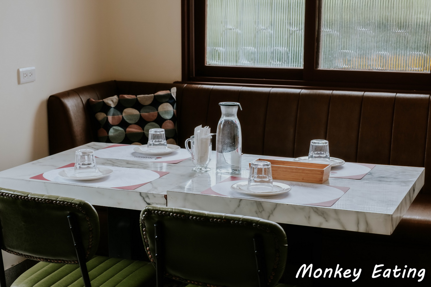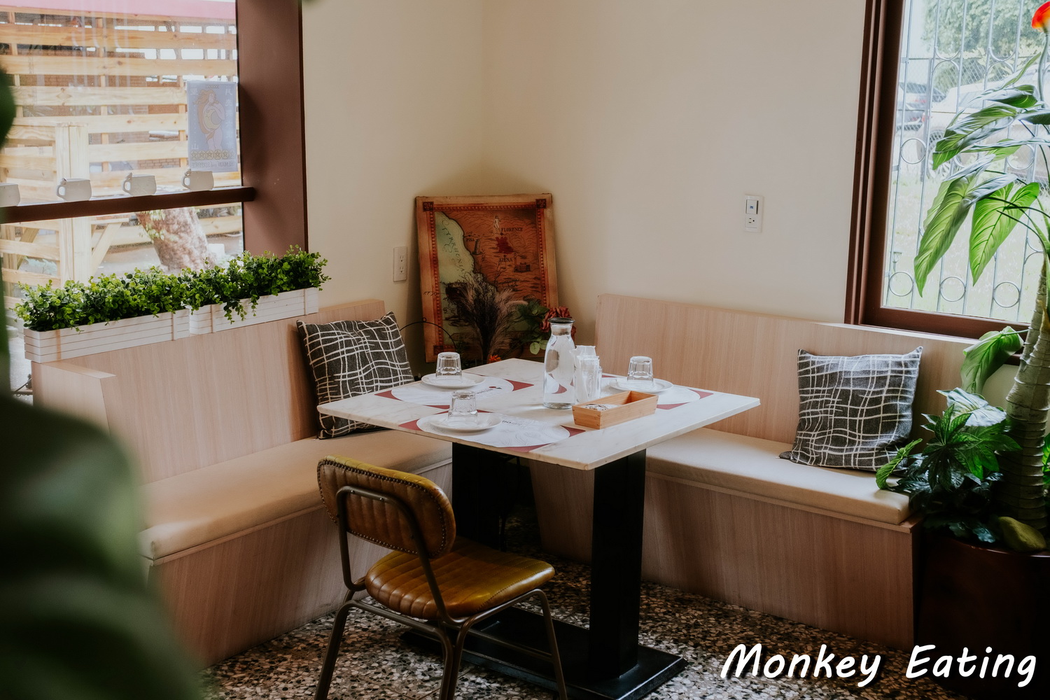 座位以雙人與四人桌為主,很適合情侶約會、朋友聚餐或家庭來訪。窗邊座位採光很不錯,搭配抱枕、綠植點綴,拍照打卡也特別有味道。