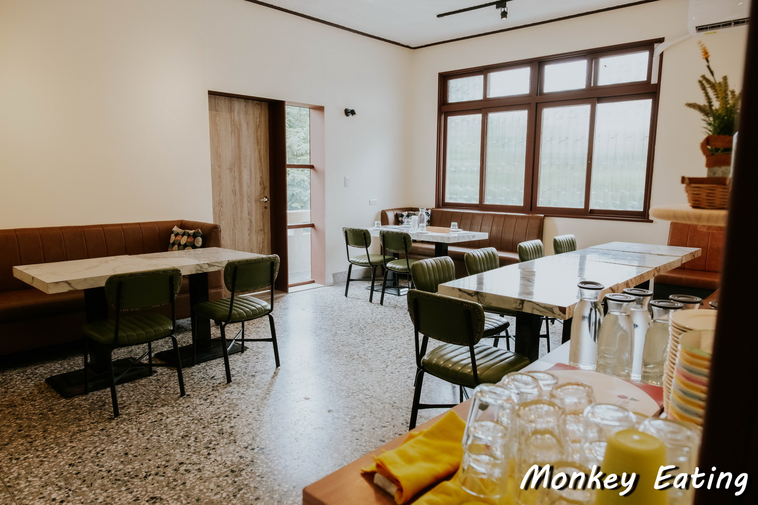 一樓是簡約溫馨的用餐空間,承襲老宅的格局與磨石子地板,結合木質調、柔和燈光與綠意植栽,整體氛圍不只舒適,更有種回到家吃飯的感覺。
