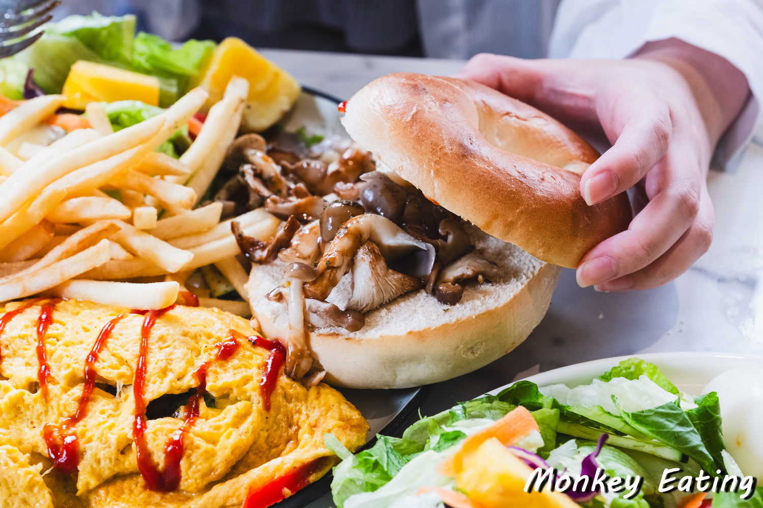 一旁的香煎菇菇也大加分,配著貝果吃也挺不賴,整個味道層次很豐富~
