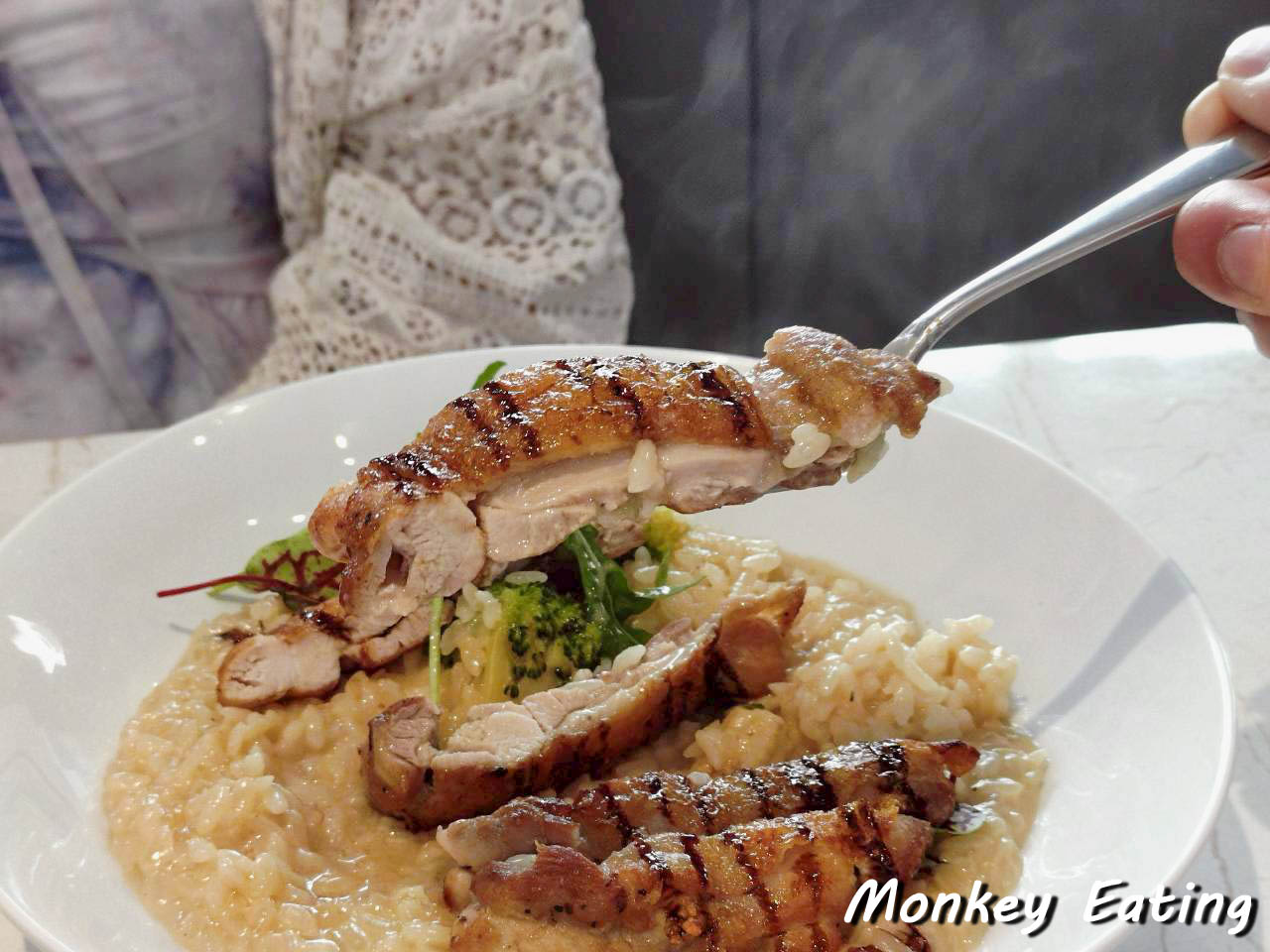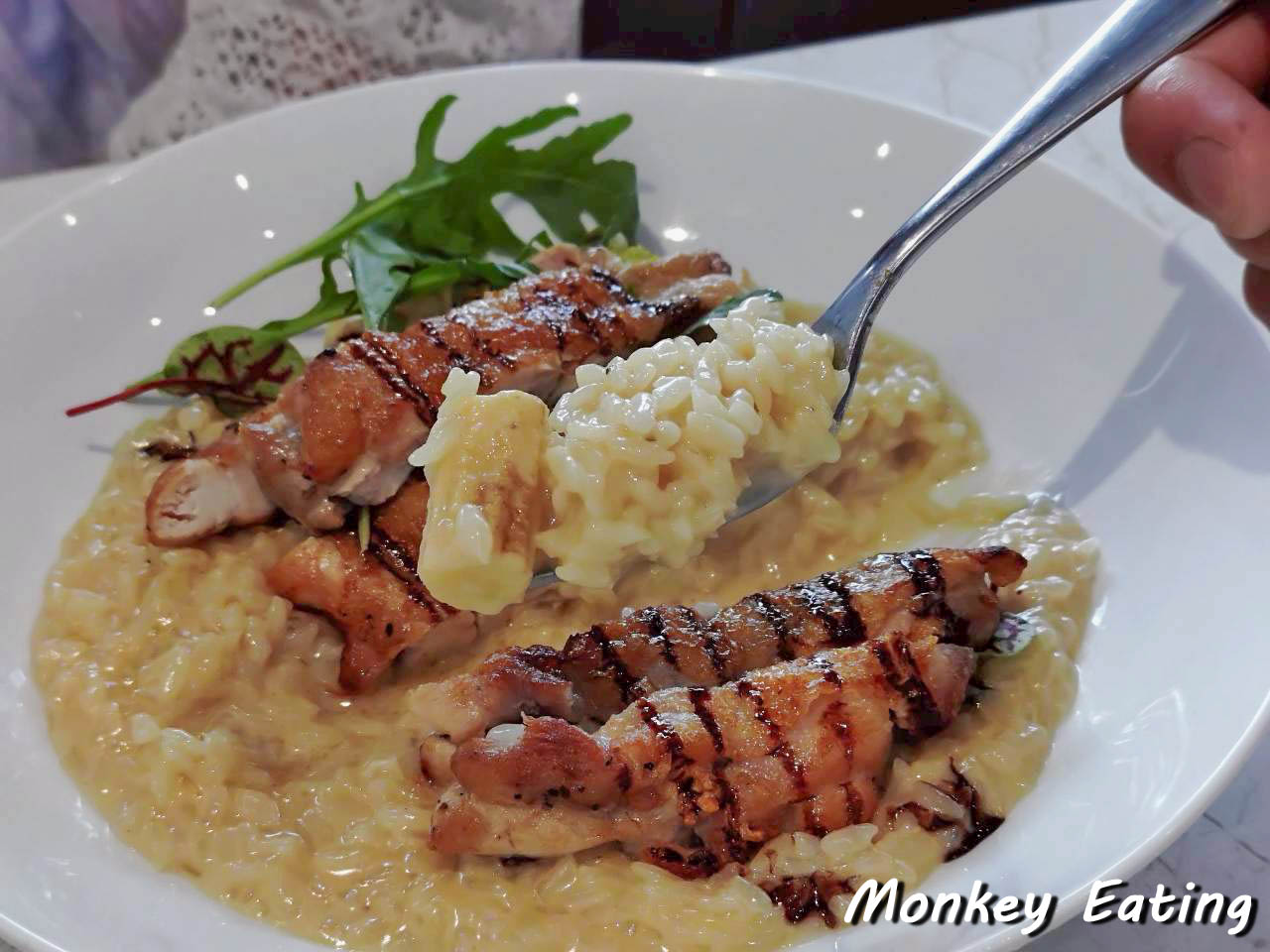 燉飯的米飯粒粒分明,吸飽了香醇的白醬精華,每一口都是滿滿的奶香與鮮甜,增添了口感層次。這道燉飯吃起來濃郁卻不膩口,搭配著鮮嫩的烤雞腿,真的讓人感到超級飽足又幸福,大力推薦給喜歡雞腿和白醬的朋友們!