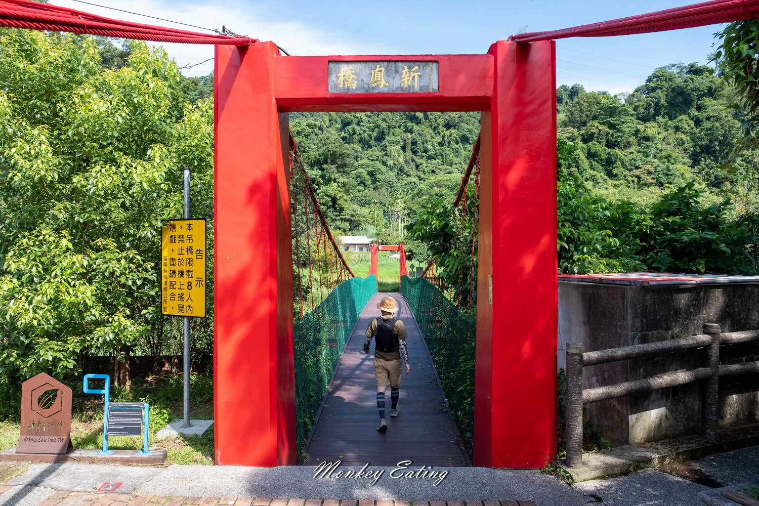 由停車場開始起登,便會看到登山口指示牌方向,途經打卡景點新鳳吊橋,連結獅潭河濱公園與鳴鳳古道