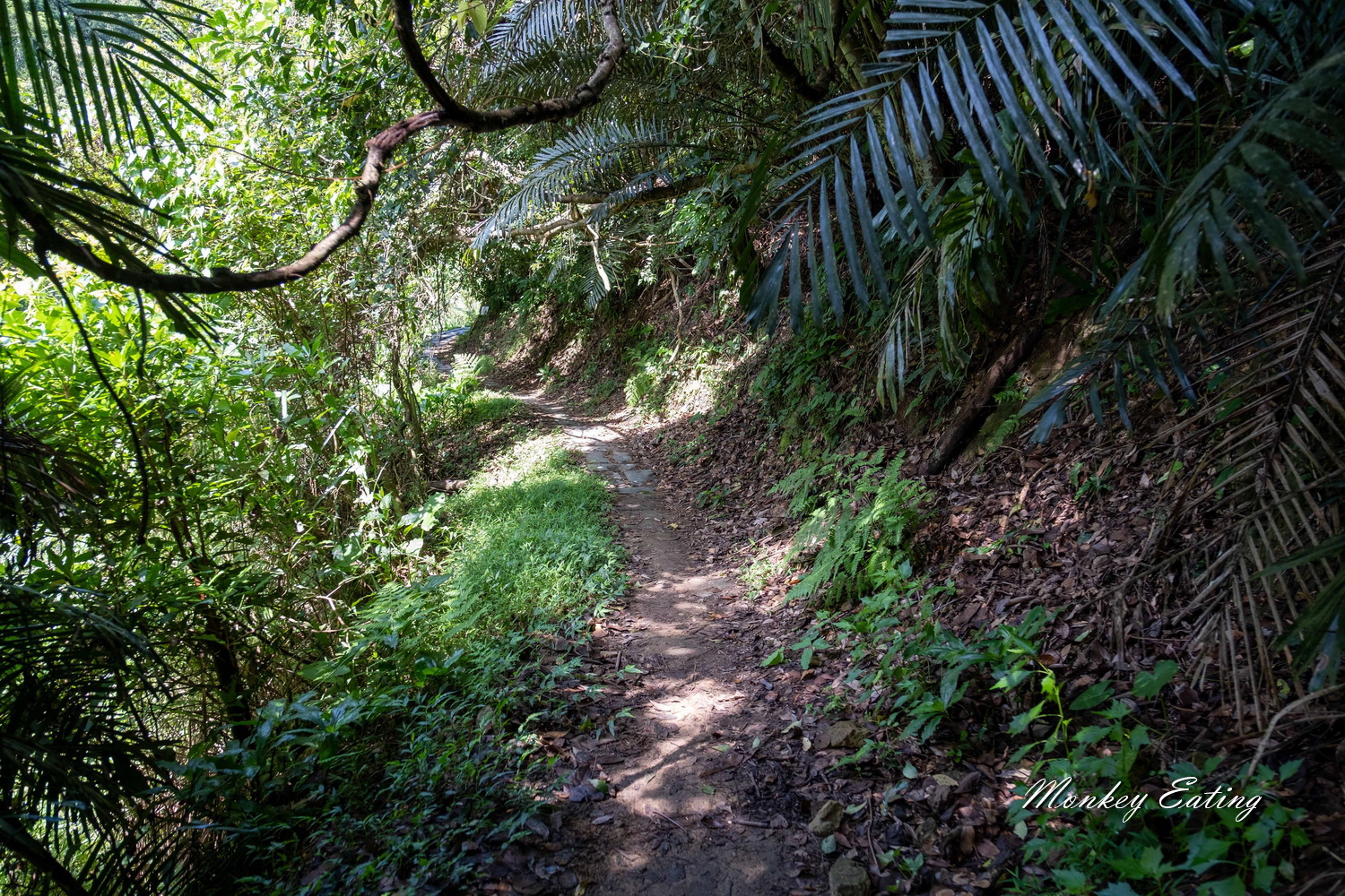 龍骨古道最後接到延平古道,很有原始森林感,以原土、落葉、小石混合的路面為主,終段沿溪走,可見水流湍緩、偶見魚影,小橋溪澗構成天然涼意幽境。