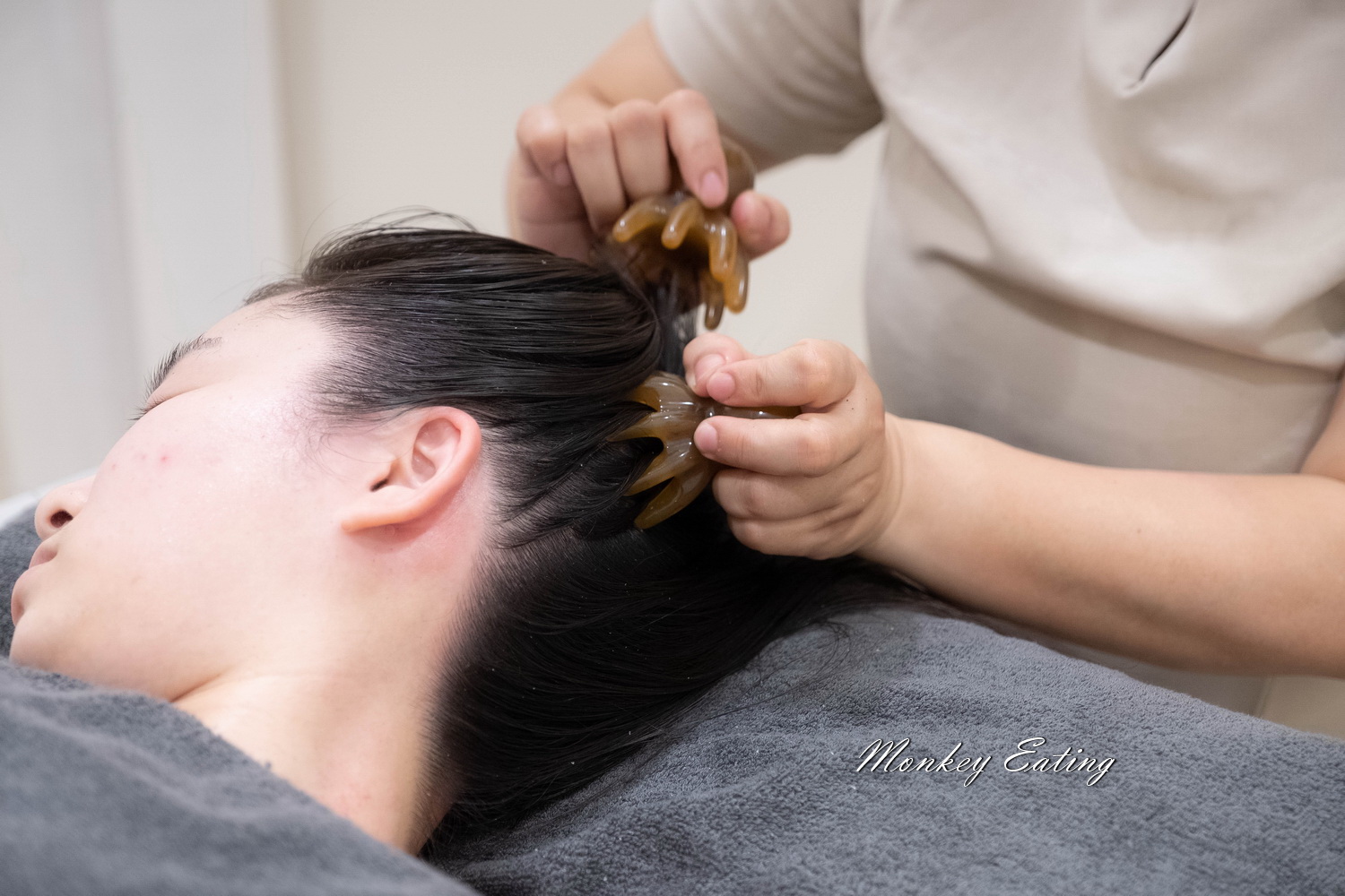 課程中,美容師會使用輕柔且細緻的技巧,透過調整顱骨和頸部的微小位置,來改善血液循環與神經系統的流暢度。這不僅能有效緩解頭痛、眼壓、肩頸不適,還能促進大腦的放鬆,改善睡眠品質。