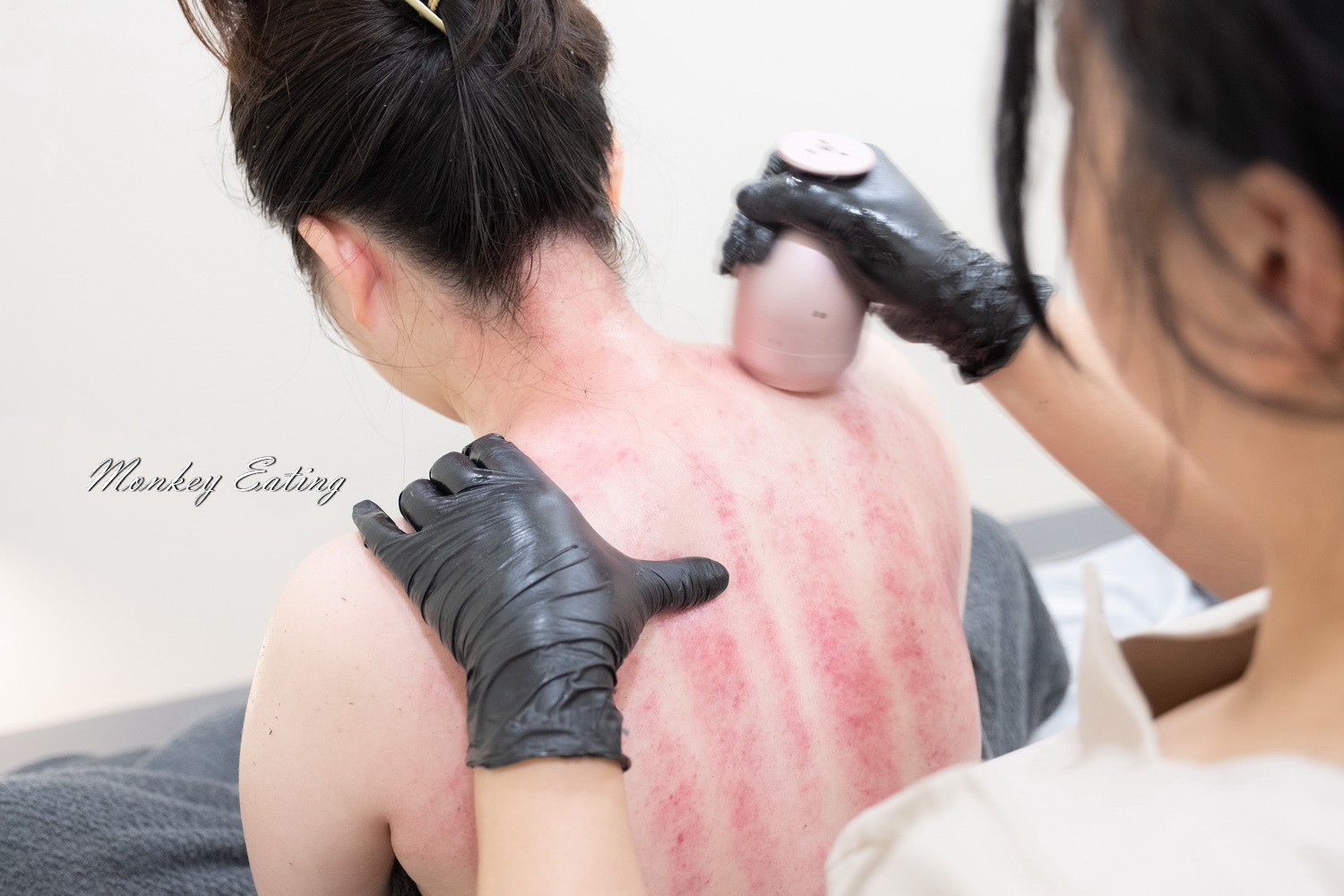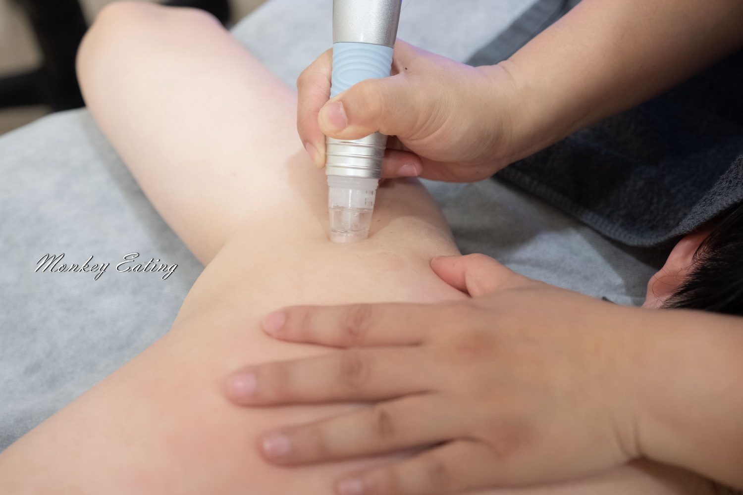 針對背部容易長的小粉刺、閉鎖性痘痘,用吸筆輕柔清理,不會痛也不會紅腫。