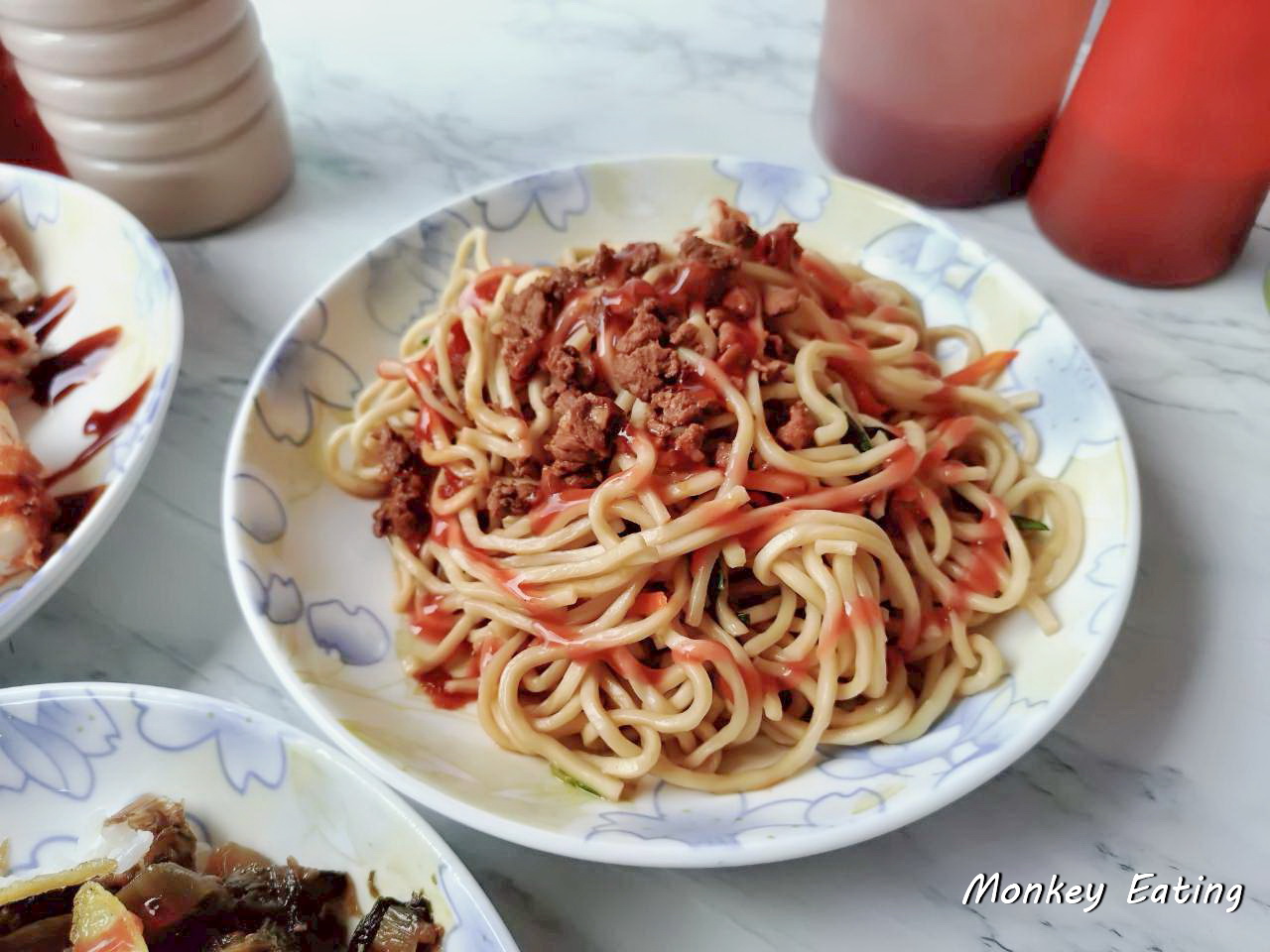 這個炒麵的份量也是超級有誠意,一盤就能讓你飽足感十足。如果再配上他們的特製辣椒醬,哇!那滋味真的會讓人意猶未盡,感覺瞬間回到小時候阿嬤煮的炒麵味道,真療癒!