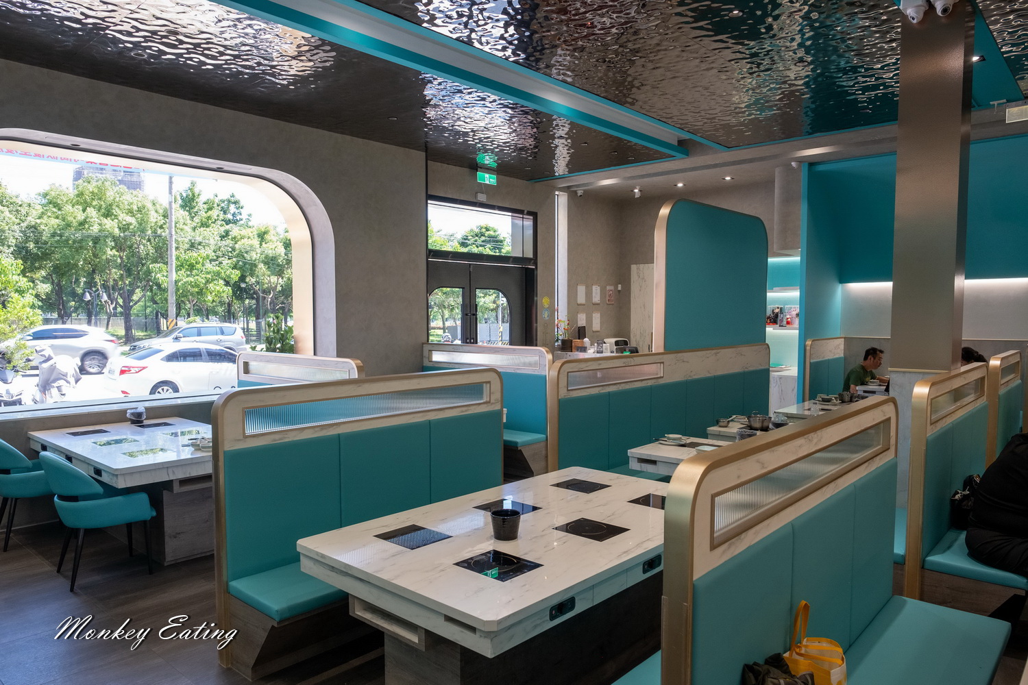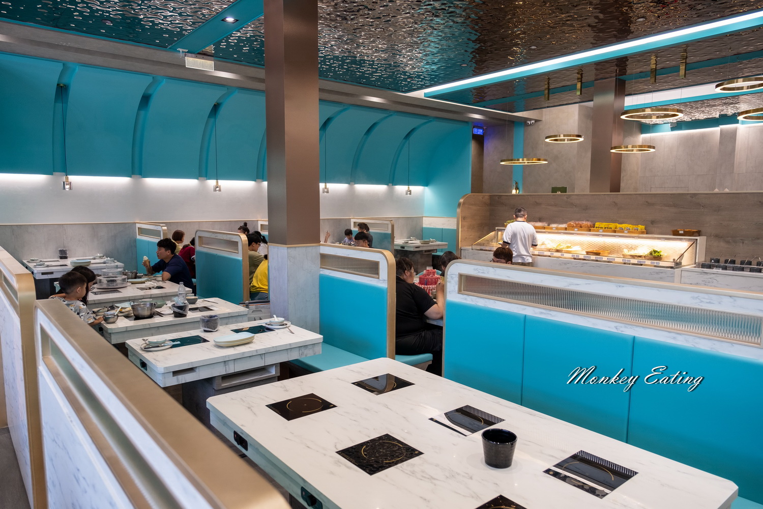 冭夯鍋物以海洋為主題,店內呈現深藍綠色的海洋氛圍,空間高挑寬敞沒有壓迫感,一走進來就非常令人放鬆。