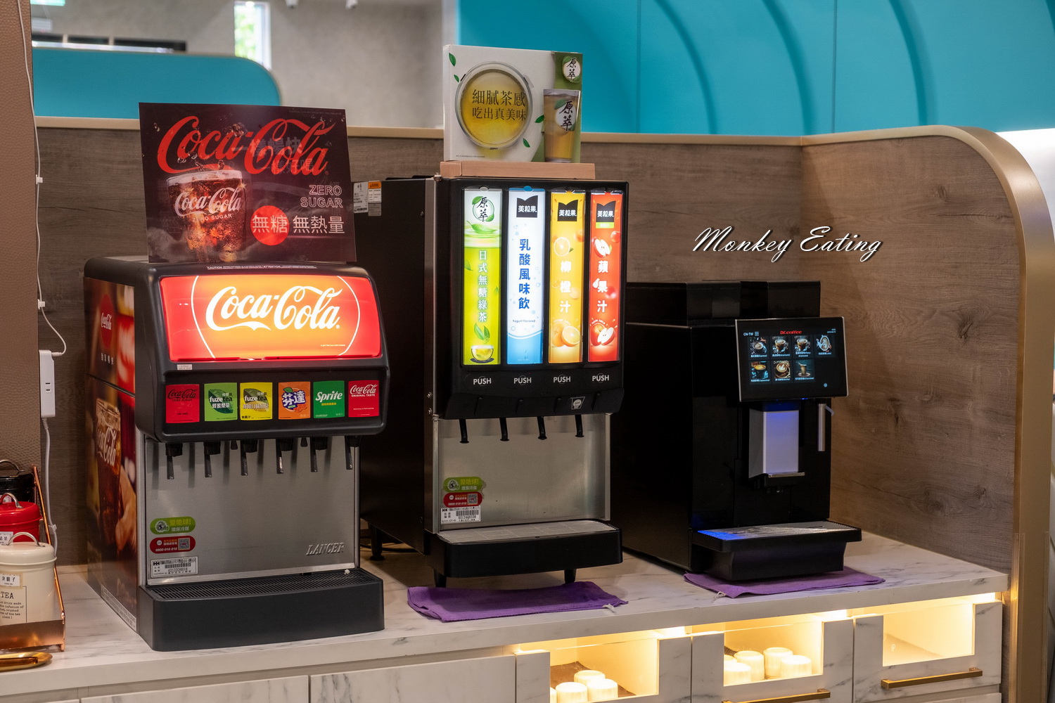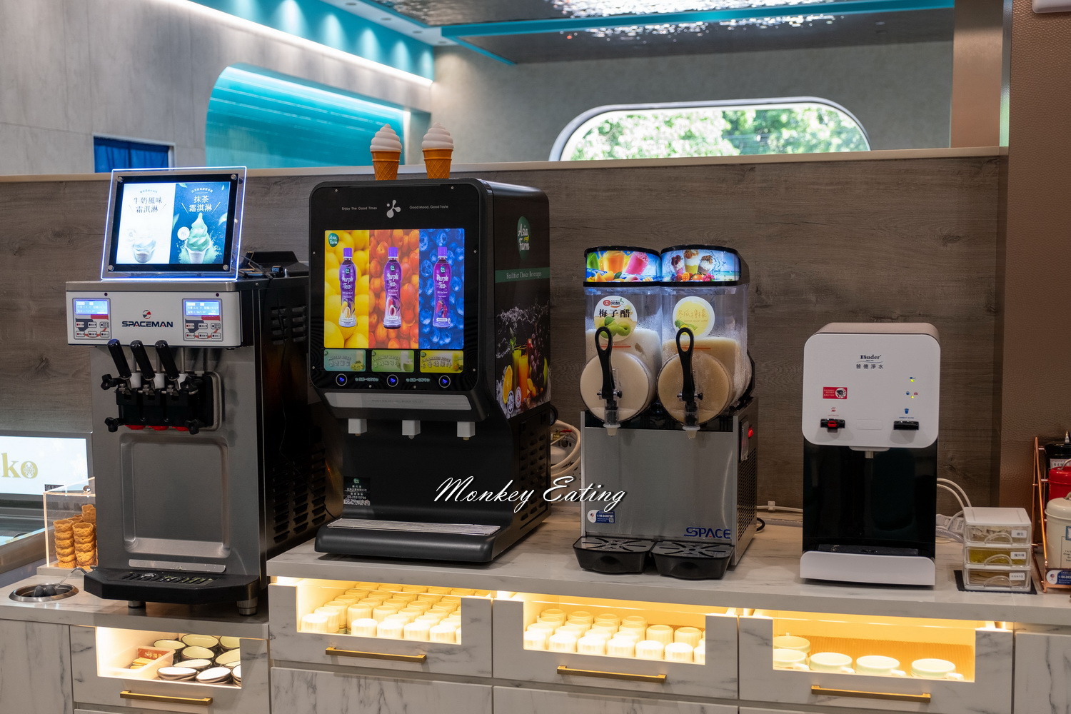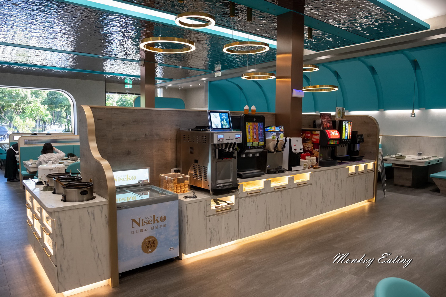 最厲害的是冭夯鍋物的自助吧相當齊全,35種冷熱飲冰淇淋讓你無限暢飲,除了高品質的十勝鮮乳冰淇淋,連霜淇淋機也準備好了,咖啡、汽水、茶飲、冰沙應有盡有。