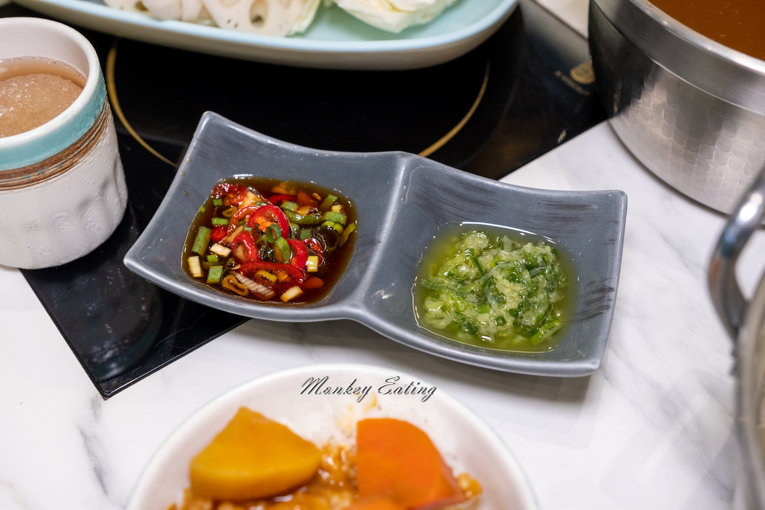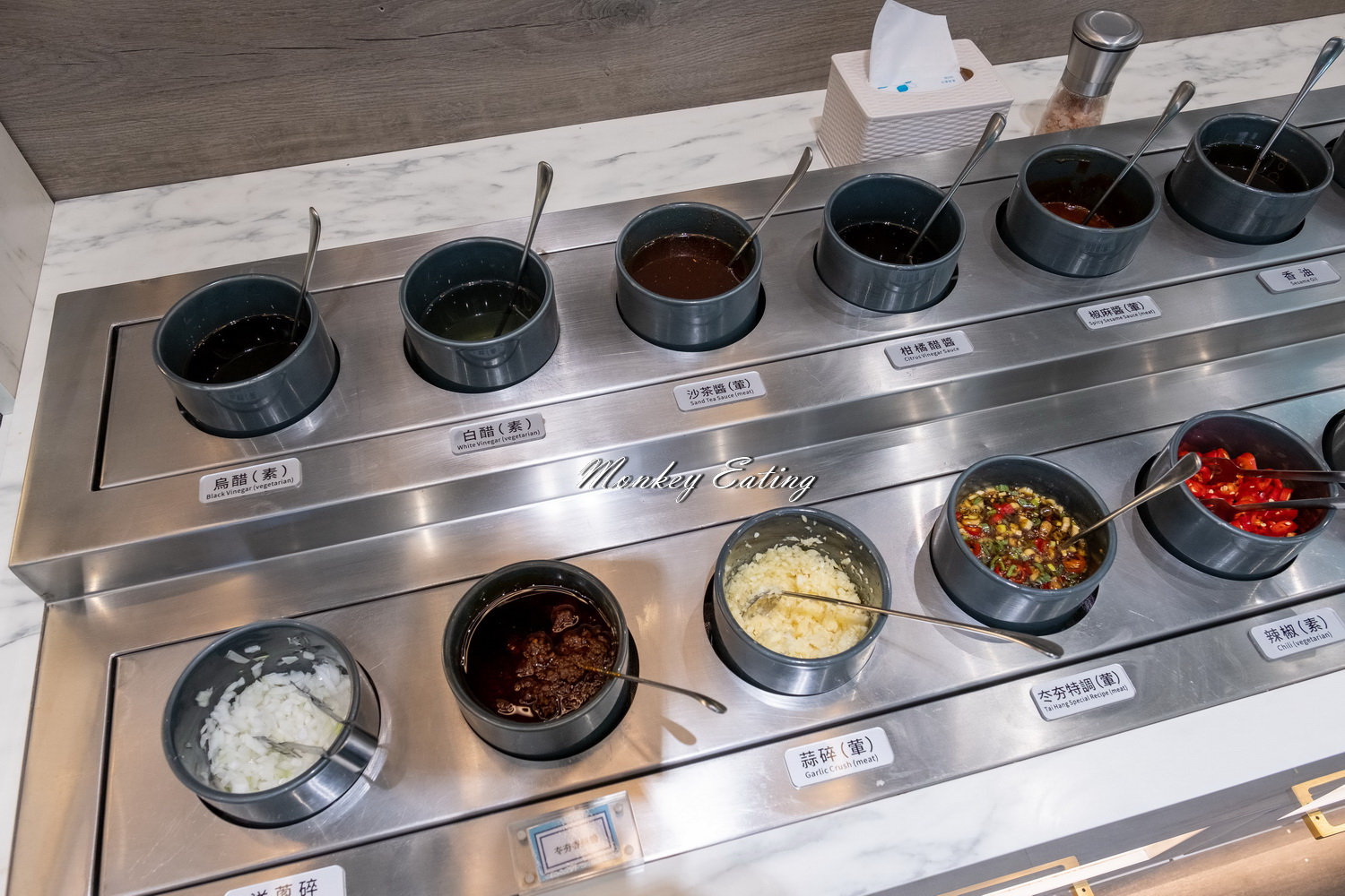 醬料區有20種醬料可自由搭配,最經典的台式口味必備沙茶、蔥、蒜、辣椒、香菜因應俱全,第一次來的可以試試看店家獨家冭夯特調醬汁,鹹香夠味很百搭。