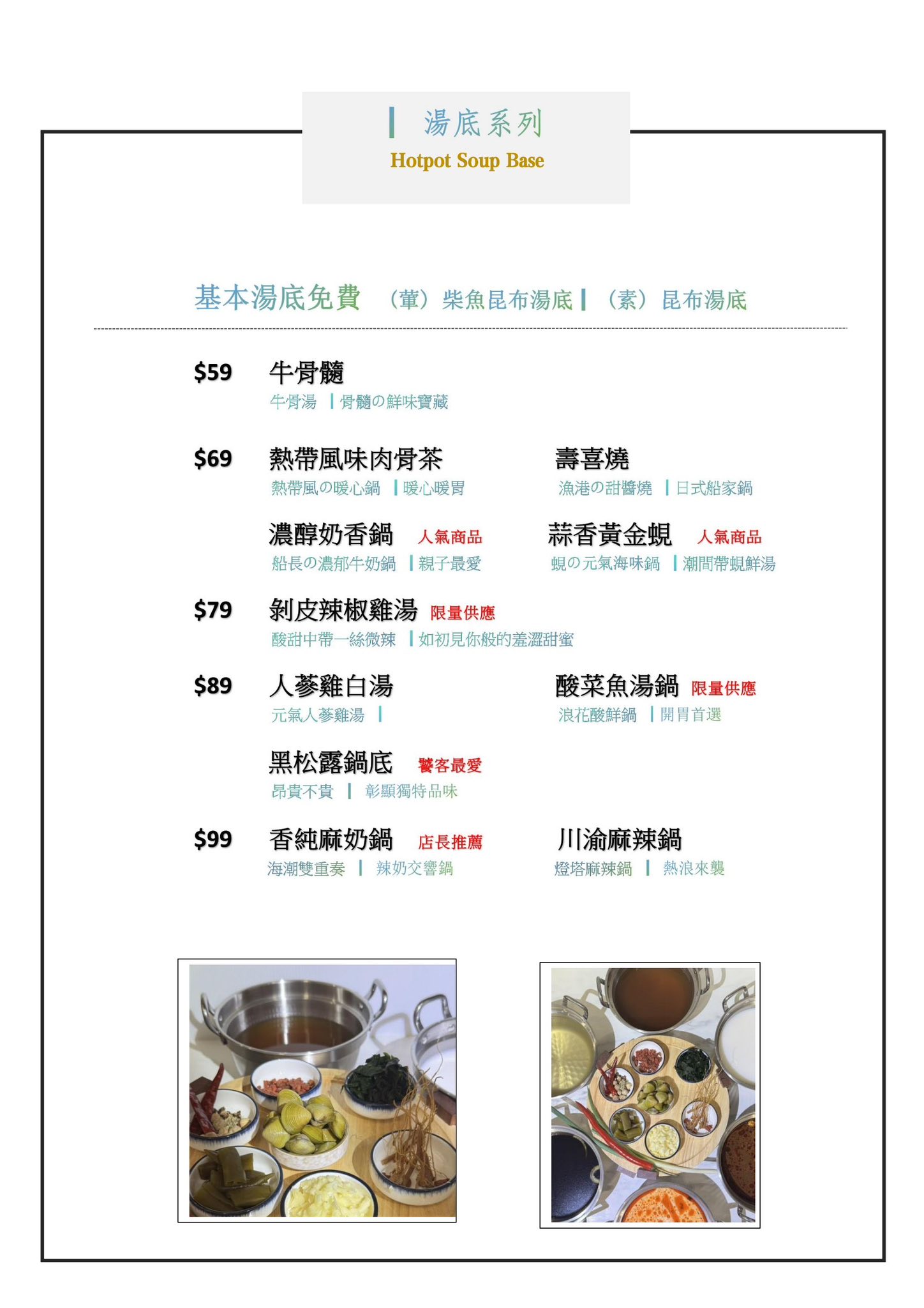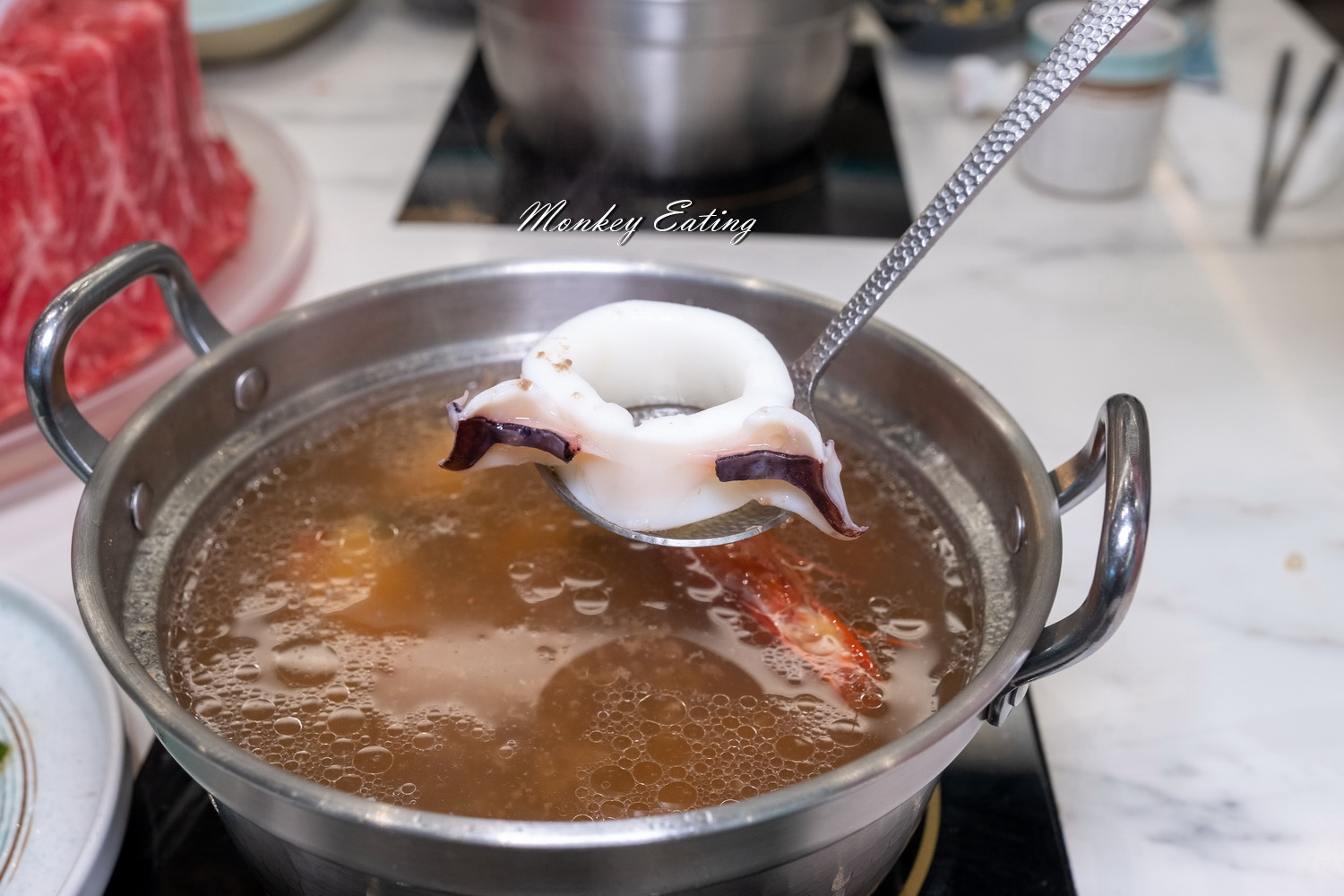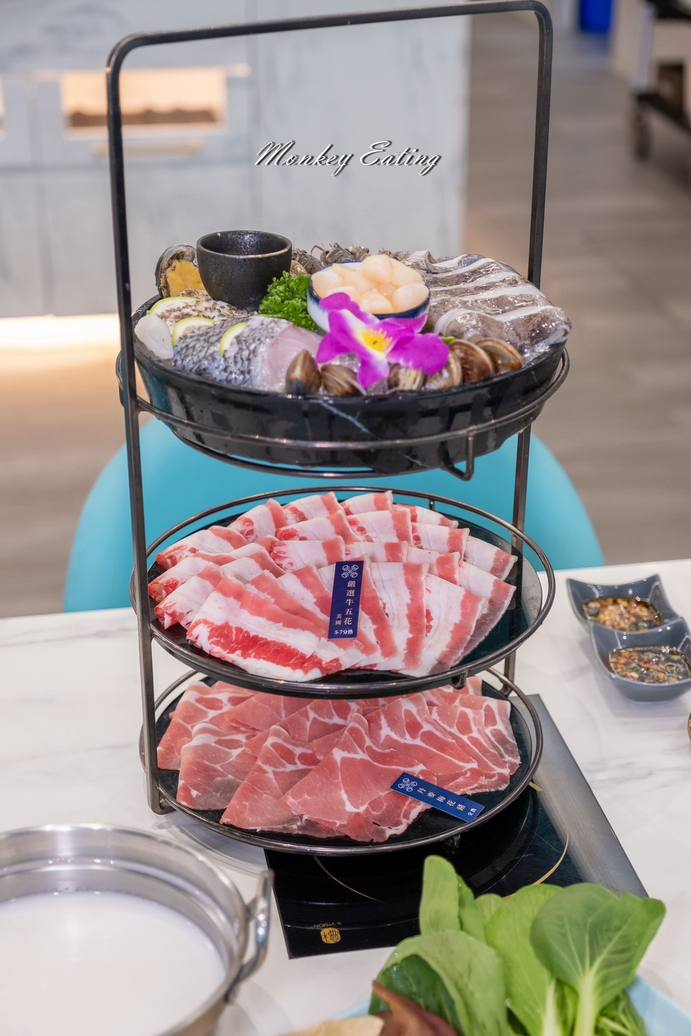 鍋底選了剝皮辣椒雞湯、黑松露鍋底、濃醇奶香鍋,都是店內人氣招牌,剝皮辣椒先是雞湯的濃郁溫潤隨即入口,緊接著辣椒的甜辣在喉間散開,回甘十足卻不刺激。黑松露鍋底則是較清爽的菇菇湯底,自然甘甜鮮美,涮各種肉類海鮮都很搭。奶香鍋香氣撲鼻、奶香四溢。湯頭喝起來像是在喝日式濃湯。
