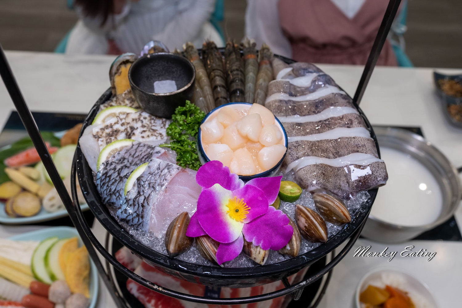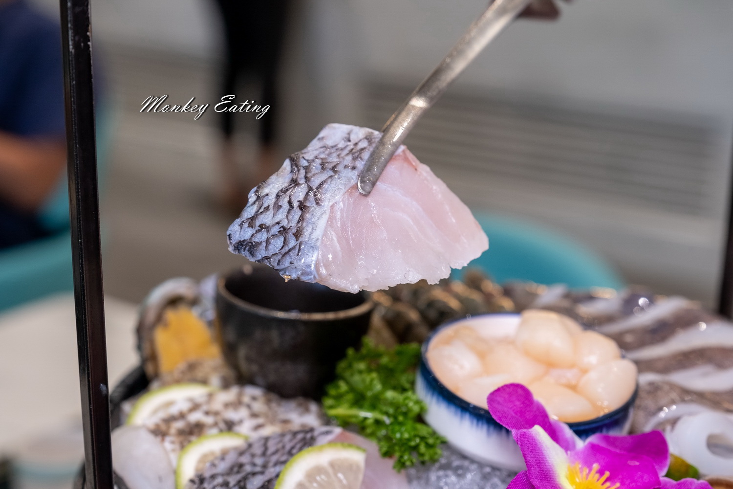 兩人用餐推薦可以選擇海陸套餐,各式新鮮海味、嚴選牛肉豬肉都可以享受到,用三層塔裝盛搭配乾冰特效整個儀式感拉滿。