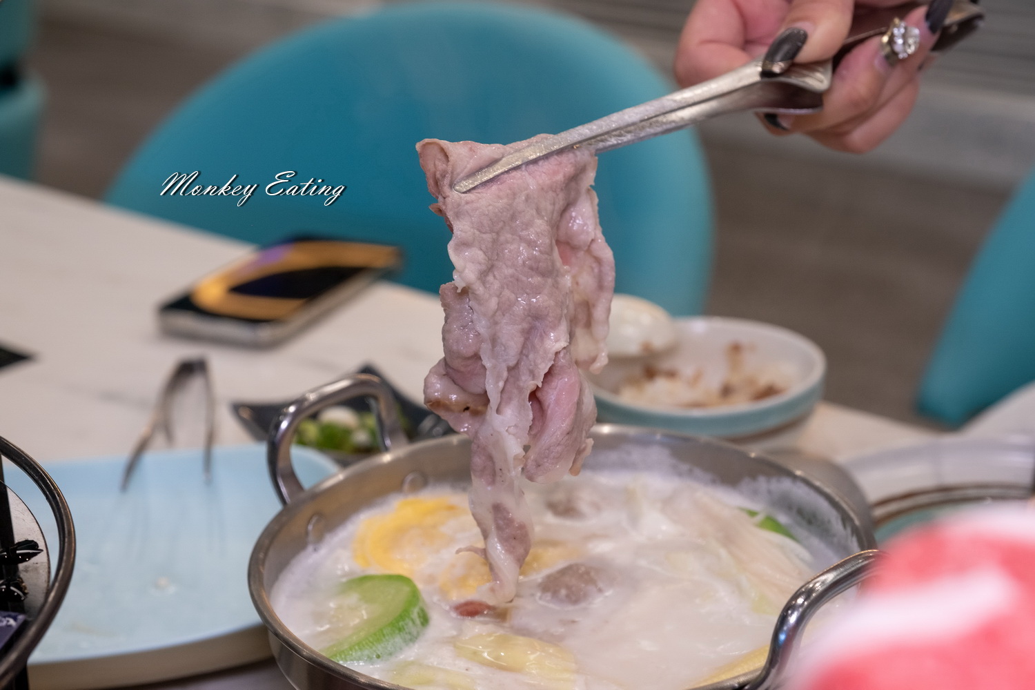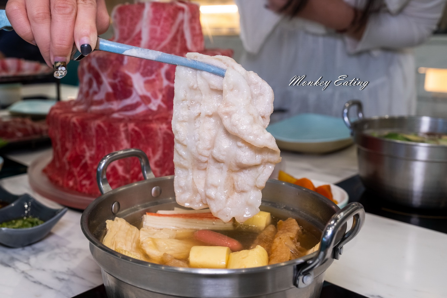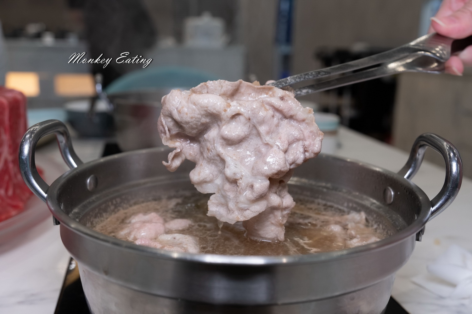 我最愛的梅花部位,脂肪分布均勻、紋路自然,涮起來不僅香氣濃郁,口感更是細嫩中帶點Q彈,滑順卻不油膩。搭配蒜蓉醬、和風胡麻醬,都能襯托出梅花豬自然的鮮甜,是火鍋控與減醣族的共同首選!