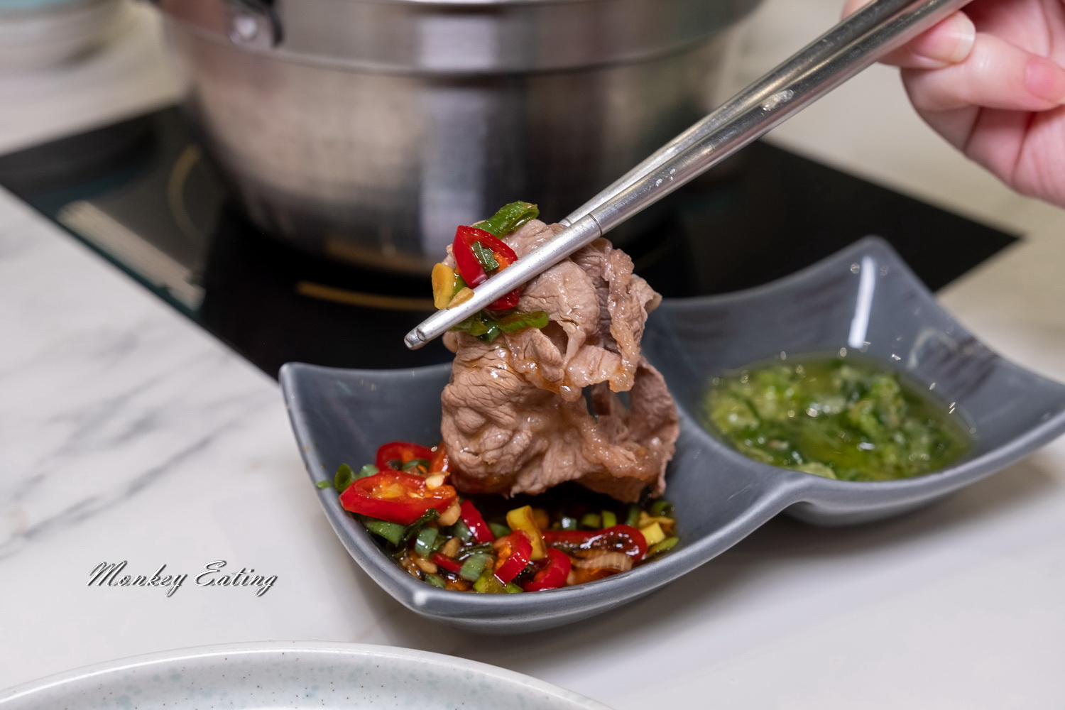 牛五花的油脂較多,因此適合快速涮煮,約5至7秒就能達到最佳口感,表層微捲,肉汁鎖在其中。搭配蔥花、蒜泥或特製醬料,更能襯托出牛肉的甘甜與濃郁風味。