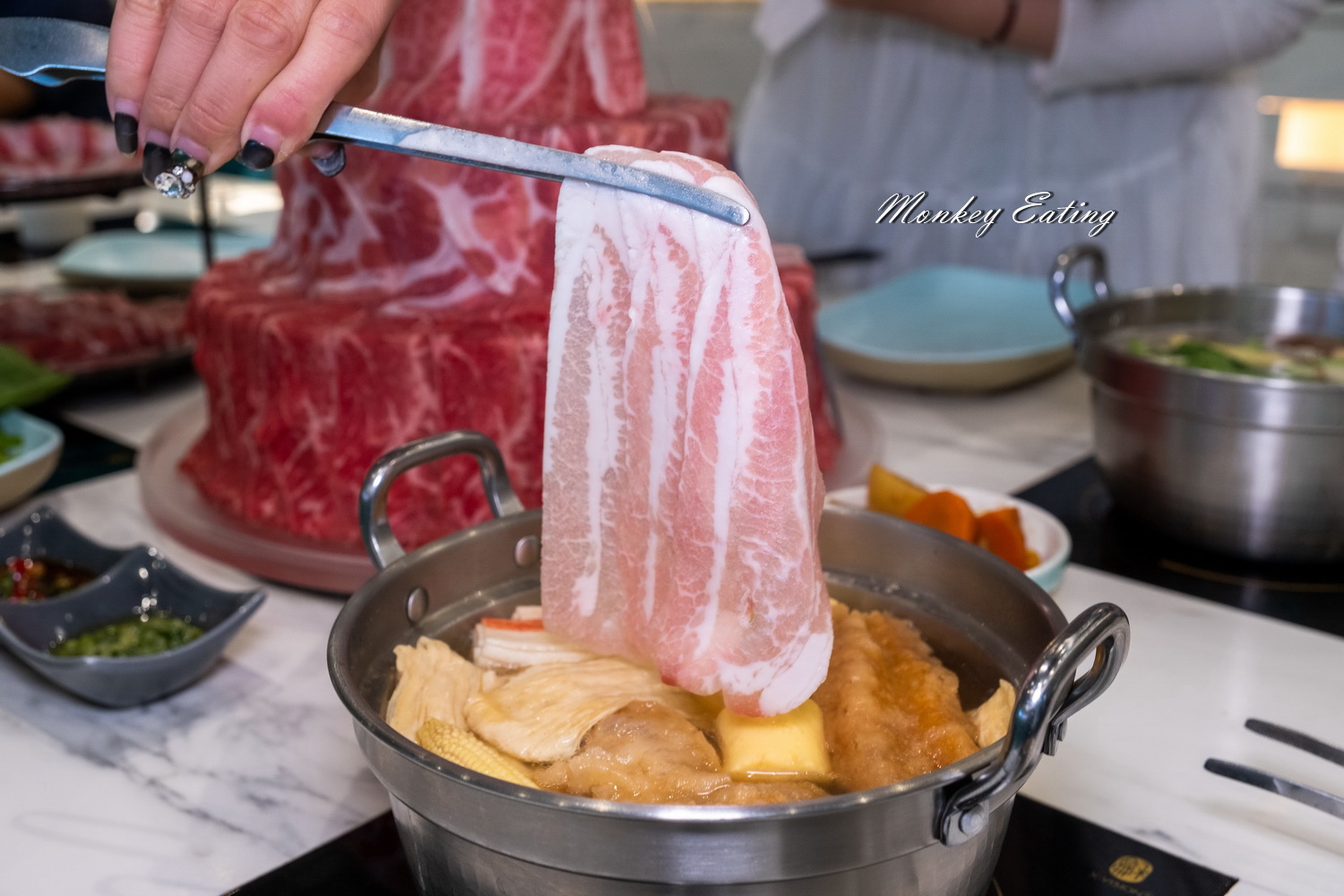 冭(ㄊㄞˋ)夯鍋物,台中火鍋推薦。台中浮誇系火鍋吃到飽又有新選擇,冭夯鍋物以海洋為主題,打造Tiffany綠質感裝潢火鍋店。平日商業午餐$298起就可以享50種自助吧品項、35種冷熱飲冰淇淋無限暢飲。還有全台獨家推出的三層肉蛋糕,雙人套餐高達800g滿滿肉量真的超過癮。營業時間開到凌晨2點中場不休息,任何時段還是宵夜都可以來吃鍋唷。
