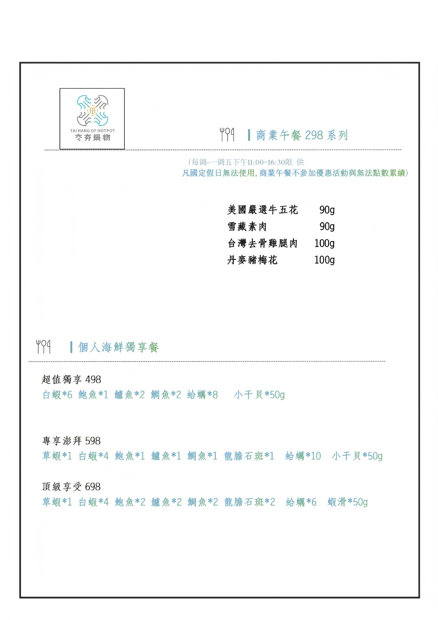 冭(ㄊㄞˋ)夯鍋物台中火鍋推薦。台中浮誇系火鍋吃到飽又有新選擇,冭夯鍋物海洋為主題,打造Tiffany綠質感裝潢火鍋店。平日商業午餐$298起就可以享50種自助吧品項、35種冷熱飲冰淇淋無限暢飲。還有全台獨家推出的三層肉蛋糕,雙人套餐高達800g滿滿肉量真的超過癮。營業時間開到凌晨2點中場不休息,任何時段還是宵夜都可以來吃鍋唷。
