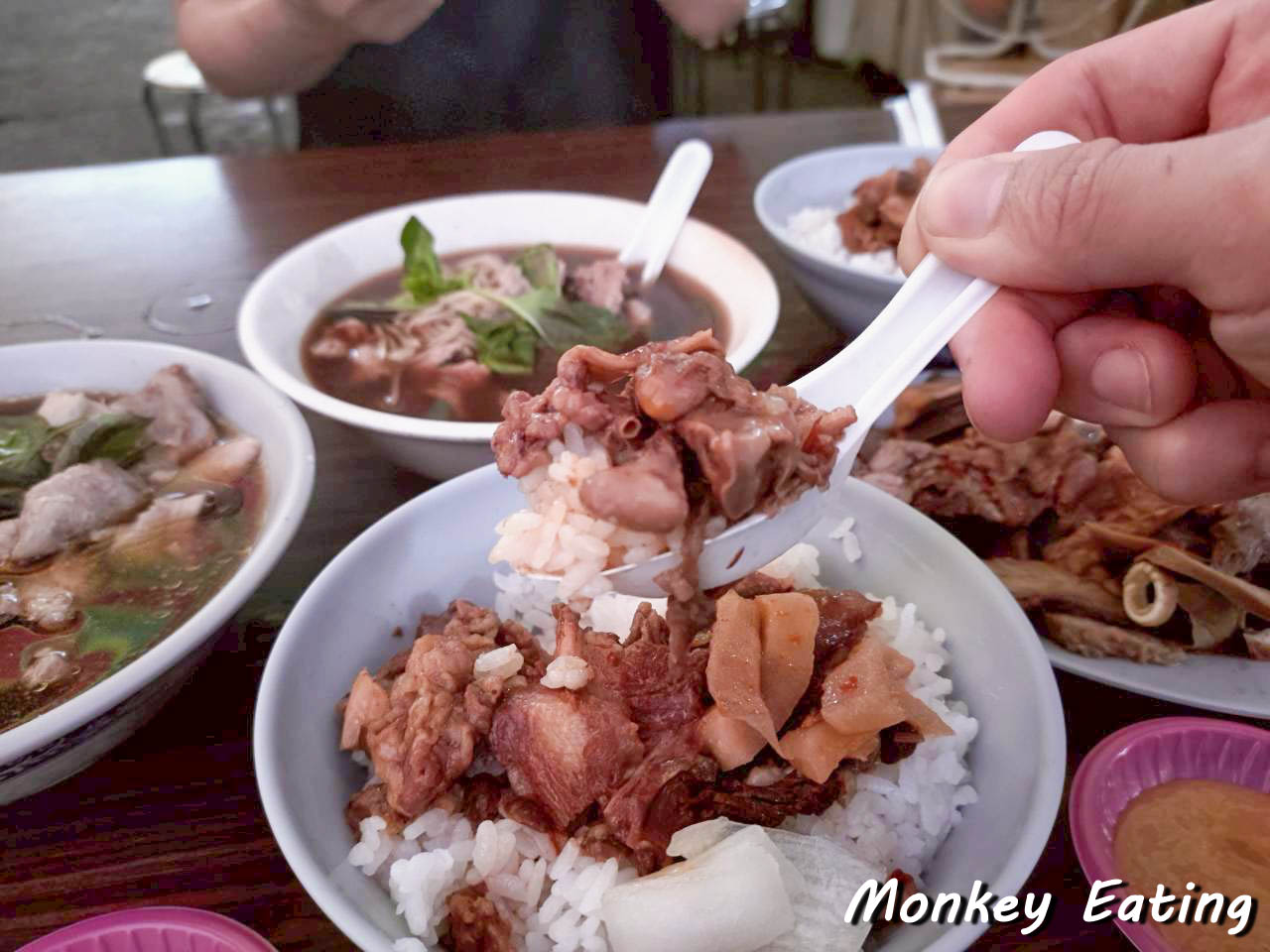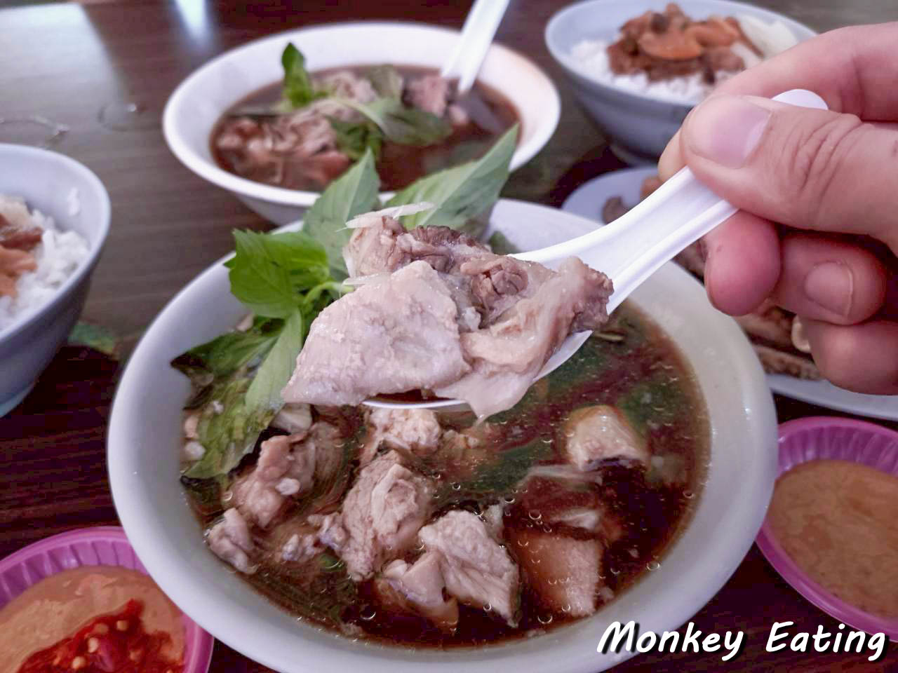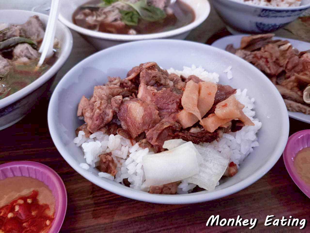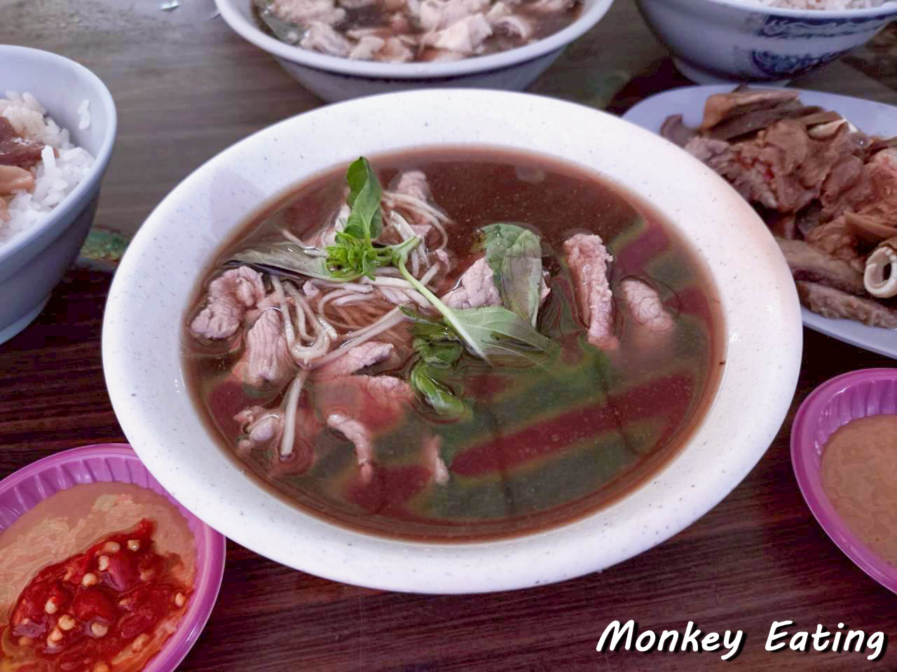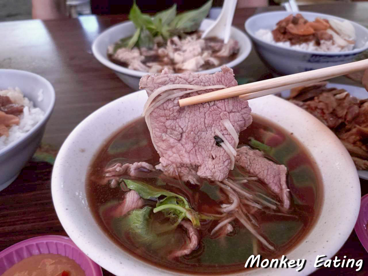 用餐空間主要以幾張小桌為主,很適合朋友小聚,或是像我們一樣,簡單來吃個早餐。你會看到許多熟門熟路的老饕們,一邊吃著熱騰騰的牛肉湯,一邊和老闆娘話家常,充滿了濃濃的人情味。坐在這裡,耳邊傳來市場的喧囂聲,眼前是熱氣蒸騰的美味料理,真是一種很特別又很接地氣的用餐體驗呢!