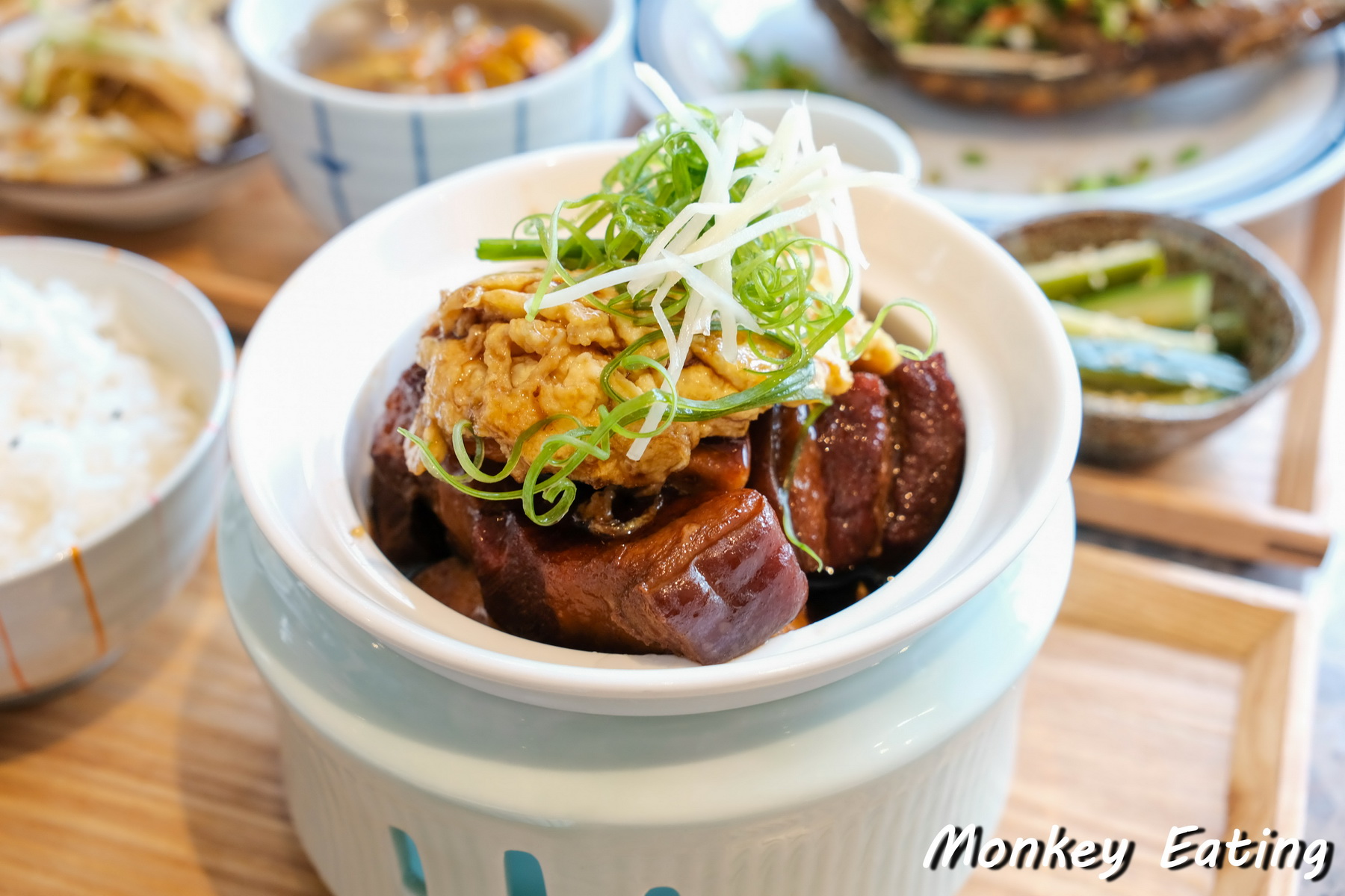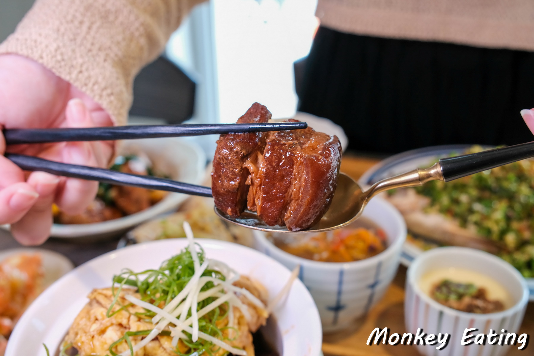 這道秘製紹興紅燒控肉一上桌,那濃郁的紹興酒香氣就撲鼻而來,光聞到就想立刻咬一口!控肉的色澤滷得油油亮亮、呈現誘人的焦糖色,光看就讓人食指大動。