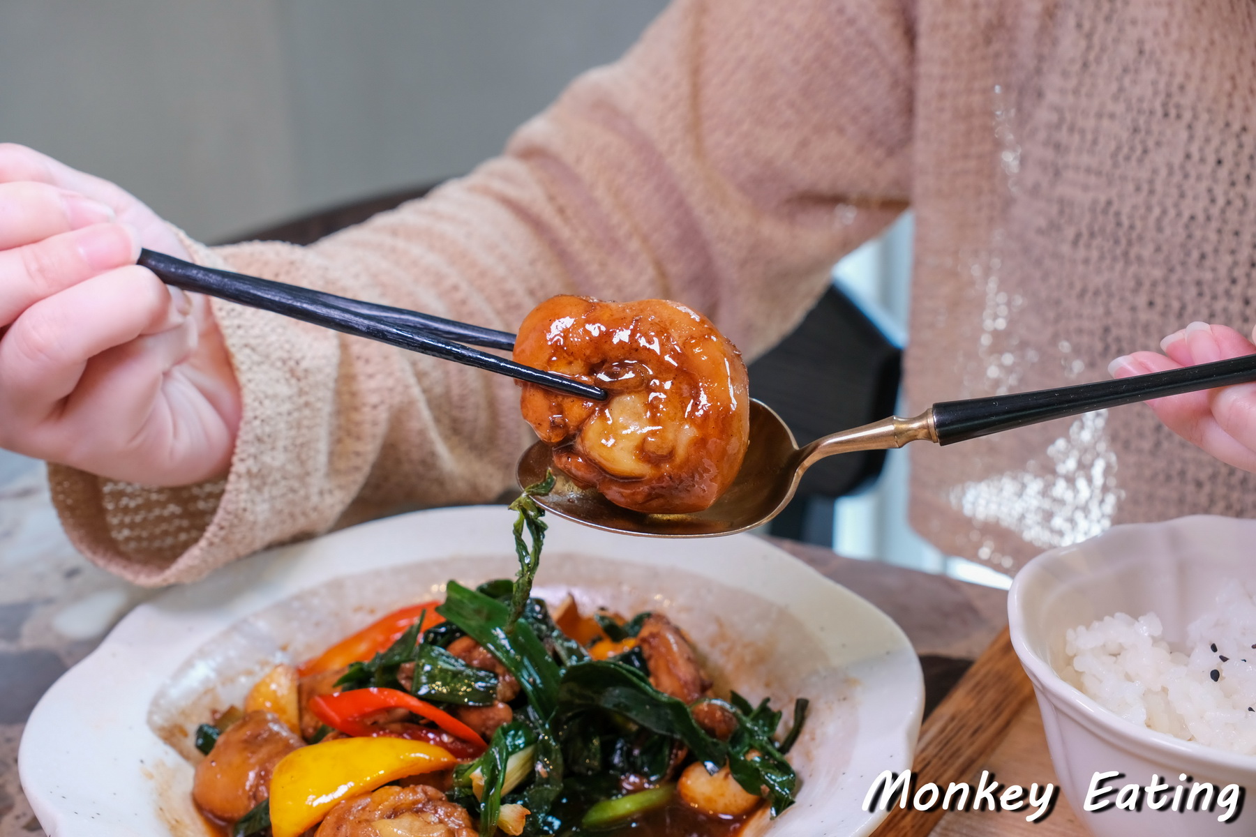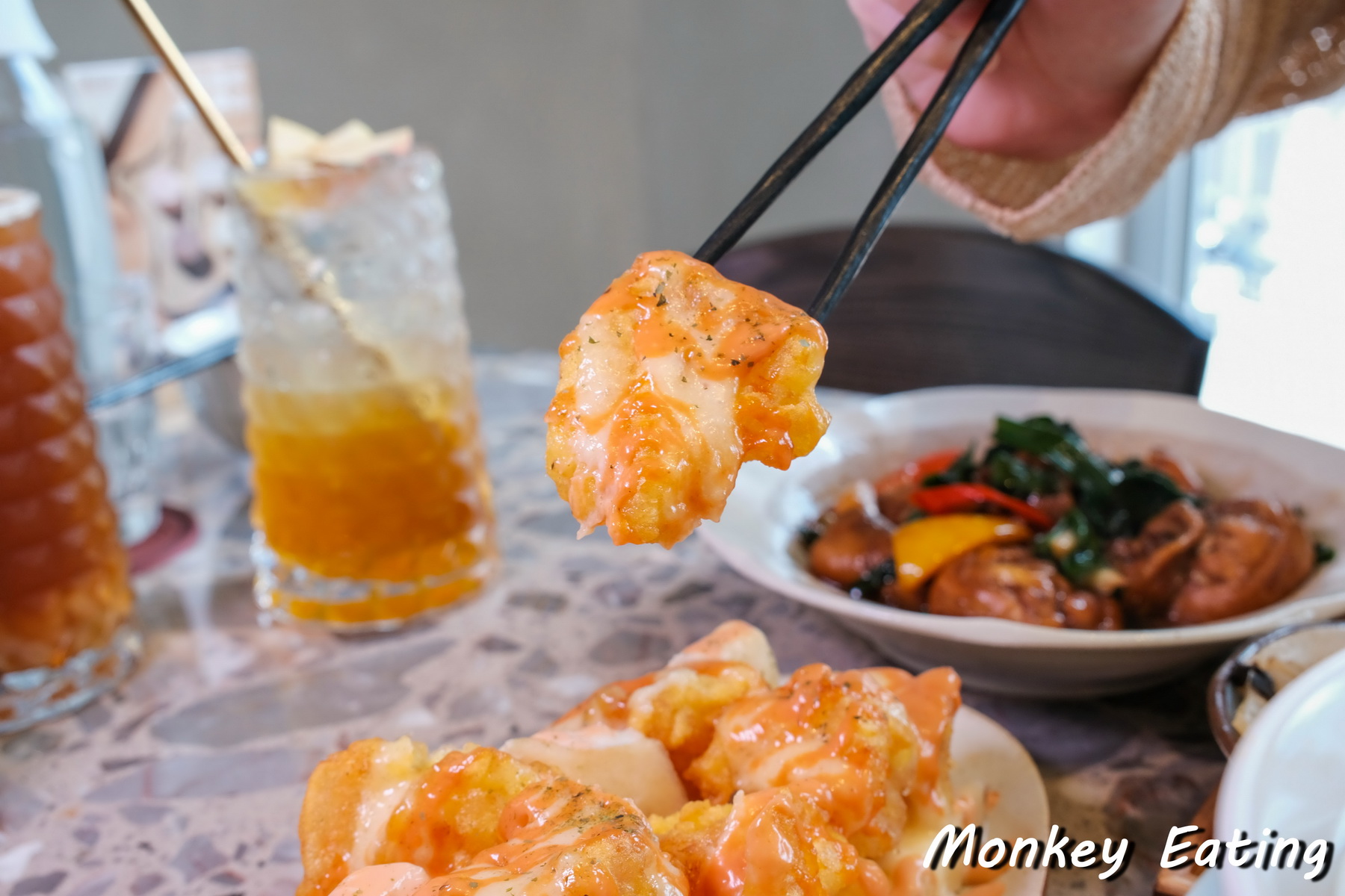 蝦球的口感非常紮實Q彈,每一口都能感受到蝦肉的鮮美,搭配酸甜的醬汁,不僅解膩,還多了幾分熱帶風情。這道菜不僅大人喜歡,小朋友一定也會愛上,是道非常成功的創意台菜!