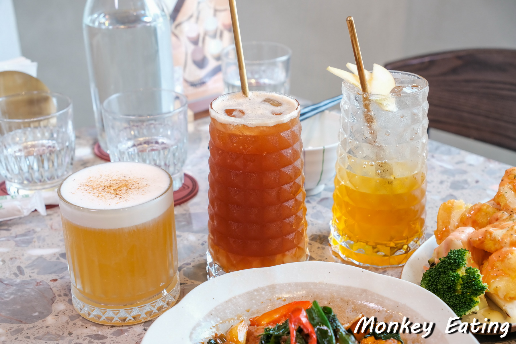 最划算的就是他們的「升級套餐」啦!只要加價,就能享受到豐盛的附餐組合,附餐搭配不定期更新菜色,這天吃到的有茶碗蒸、金針排骨湯、醃小黃瓜、白菜滷、以及手做茶凍。光是這些附餐的份量和精緻度,就覺得這個加價超、值、得!第一次來用餐的朋友們,我真的推薦你們可以升級套餐,保證吃得飽飽又開心!除了主餐,還有各式特色飲品和精緻的台式下午茶點心,從午餐吃到下午茶,一次滿足你的胃!