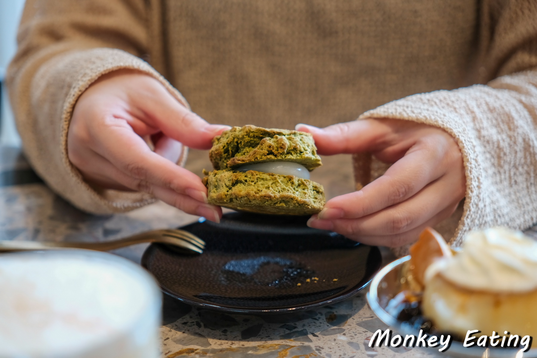 這款抹茶麻糬斯康更是讓我驚喜萬分!外皮烤得酥酥脆脆,抹茶香氣濃郁,切開後裡面竟然還有QQ的麻糬餡料,口感層次超級豐富!抹茶的微苦與麻糬的Q軟,加上斯康本身的紮實,每一口都是驚喜,搭配一杯熱茶,就是最完美的下午茶時光!